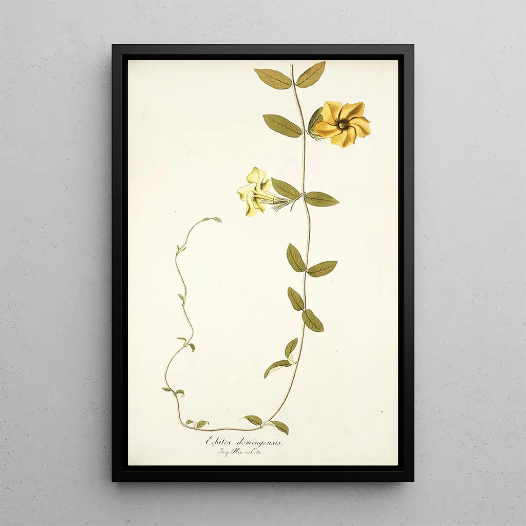 The art print of 'Echites domingensis' is an ideal choice to enhance your interior, whether in a living room, office, or bedroom. Its print quality and fidelity to the original colors make it a captivating art piece that draws attention. This artwork brings a touch of freshness and serenity to any space, while celebrating the beauty of nature. By choosing this art print, you add not only a piece of art to your decor but also a conversation starter that evokes the harmony between art and science.