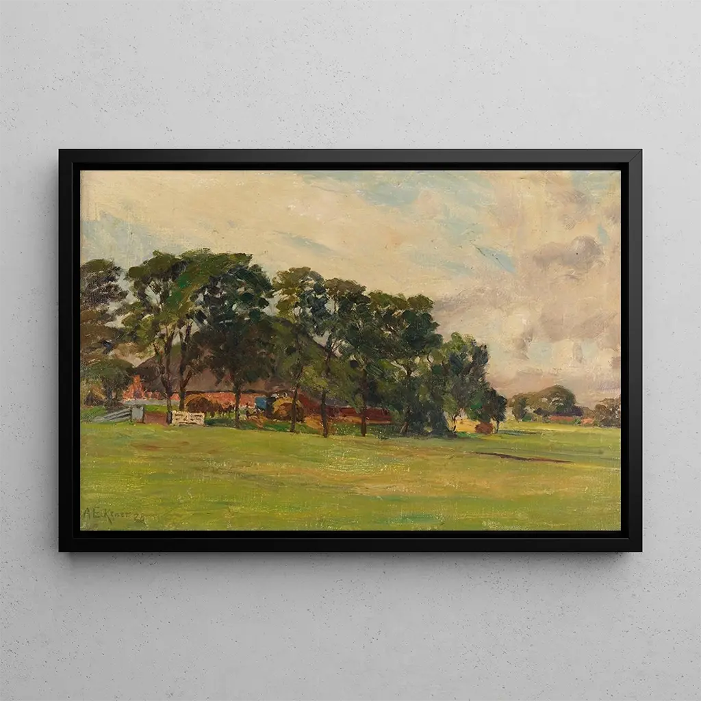 Haubarg in Eiderstedt: An homage to rural life The art print Haubarg in Eiderstedt by Alex Eckener transports us to a typical rural landscape of northern Germany. This canvas depicts a traditional farm, the haubarg, characterized by its unique architecture and integration into the surrounding landscape. The earthy colors and shades of green evoke the richness of nature, while the soft light illuminates the scene, creating a warm and welcoming atmosphere. Eckener succeeds in capturing the essence of rural life, where man and land coexist in harmony, inviting the viewer to appreciate the simplicity and beauty of everyday life. Alex Eckener: A glimpse into German rurality Alex Eckener, a 20th-century painter, is recognized for his representations of German rural life. His art is part of a movement that values nature and local traditions, in response to the growing industrialization of his era. Influenced by the landscapes of his youth, Eckener developed a style that combines realism and impressionism, highlighting the beauty of everyday scenes. Haubarg in Eiderstedt is an emblematic example of his work, illustrating his attachment to cultural roots and the natural environment, while offering a reflection on the passage of time. A decorative piece with multiple virtues The art print Haubarg in Eiderstedt is a decorative piece that will enrich your interior, whether in a living room, office, or bedroom. Its reproduction quality ensures fidelity to the details and colors of the original artwork, adding a touch of authenticity to your decor. This painting evokes an atmosphere of tranquility and simplicity, ideal for creating a calming space. By choosing this canvas, you invest in a work that not only enhances your decor but also tells a story about rural life and the beauty of German landscapes.