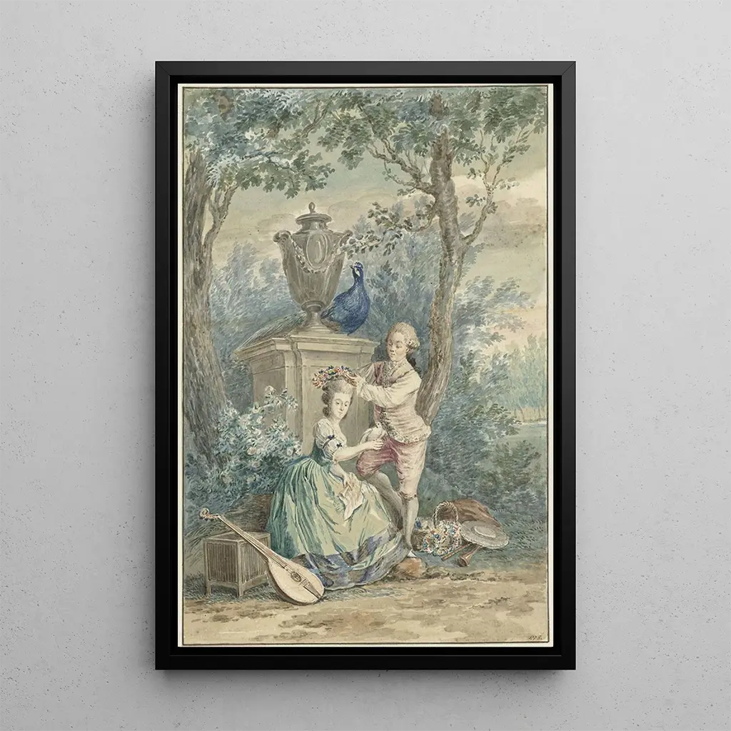 Elegant couple in a park: a scene full of grace In this art print of the painting "Elegant Couple in a Park," Nicolaes Muys captures a moment of serenity and elegance. The characters, dressed in refined costumes, stand in a lush park, surrounded by greenery and vibrant flowers. The pastel colors, soft and luminous, create a romantic atmosphere, while Muys's technique, with its delicate brushstrokes, brings each detail to life. The work invites a soothing contemplation, where one can almost hear the whisper of the wind in the trees and the singing of the birds. Nicolaes Muys: a master of portraiture in the 17th century Nicolaes Muys, active in the 17th century, is recognized for his refined portraits and genre scenes. Influenced by the masters of his time, he knew how to combine realism and elegance in his works. Muys often depicted bourgeois life, highlighting fashion and customs of his era. His baroque style, characterized by meticulous attention to detail and subtle use of light, reflects the importance of Dutch painting during this period. His works, although less known than those of his contemporaries, reveal a unique artistic sensitivity. A decorative acquisition with multiple assets The art print of "Elegant Couple in a Park" is an ideal decorative piece to enhance your interior. Whether in a living room, office, or bedroom, this artwork adds a touch of sophistication and charm. Its printing quality guarantees fidelity to the colors and details of the original work, while offering undeniable aesthetic appeal. By choosing this canvas, you opt for a decoration that evokes the elegance of the past while harmoniously fitting into a modern setting.