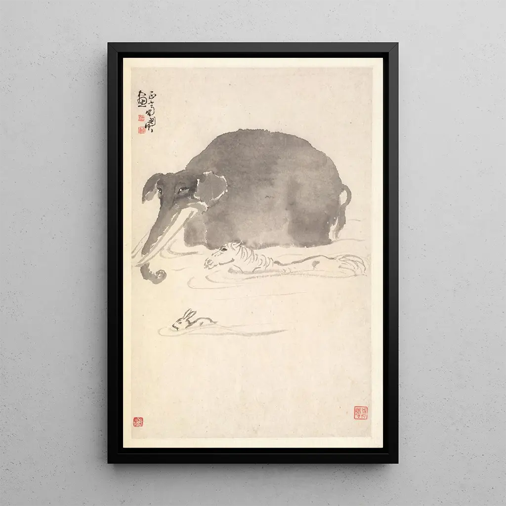 Elephant, horse and hare: a harmony of nature's forces In "Elephant, horse and hare," Min Zhen captures the very essence of wildlife through a dynamic and balanced composition. The animals, each representing distinct qualities, are depicted with meticulous details and vibrant colors that breathe new life into the canvas. The elephant, symbol of wisdom and strength, stands alongside the horse, emblem of freedom, while the hare, delicate and agile, adds a touch of lightness. This art print evokes a perfect harmony between the different forces of nature, inviting the viewer to reflect on the interconnectedness of all things. Min Zhen: a craftsman of tradition and innovation Min Zhen is renowned for his skill in blending traditional Chinese painting techniques with a contemporary sensibility. Active during the Ming period, he was influenced by Taoist and Buddhist philosophies, which advocate harmony between man and nature. His work is characterized by a constant pursuit of beauty and balance, allowing him to stand out among his contemporaries. By revitalizing classical themes, Min Zhen has managed to reach a broad audience, making him a pillar of Asian art. A decorative acquisition with multiple advantages The art print of "Elephant, horse and hare" is a decorative choice that will enrich your living space, whether in a living room, office, or bedroom. Its print quality and attention to detail make this canvas a true masterpiece to admire daily. By integrating this piece into your decor, you bring a touch of elegance and serenity, while celebrating the richness of Asian culture. This artwork, both aesthetic and symbolic, will appeal to all art and decor enthusiasts.