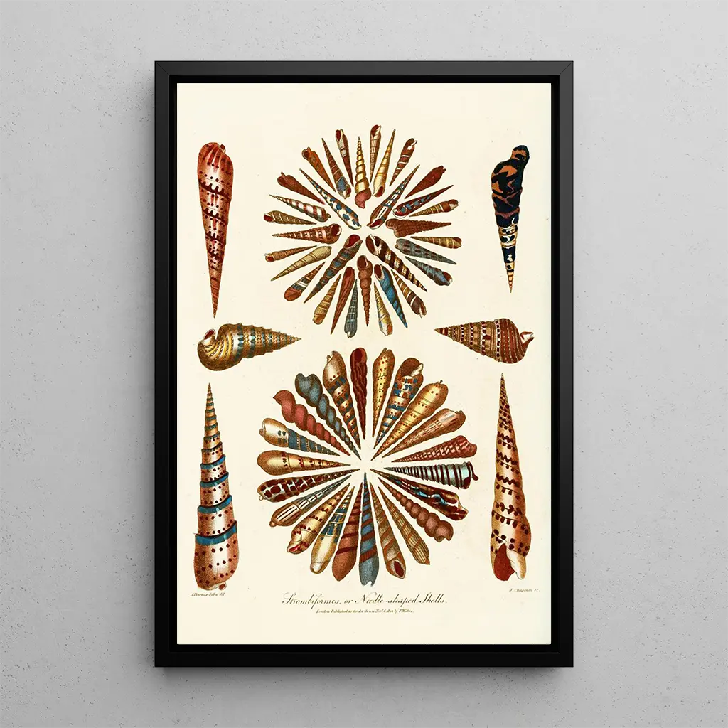 The art print of Encyclopaedia londinensis Conchyliologie Pl 11 immerses us in a fascinating universe, where the beauty of shells is revealed with delicacy. The shades of blue and beige intertwine harmoniously, evoking ocean depths and sunlit beaches. The engraving technique used by the artist gives each detail remarkable precision, highlighting the textures and varied shapes of these marine treasures. The atmosphere emanating from this piece is both soothing and captivating, inviting the viewer to a serene contemplation of nature's wonders. John Chapman: a pioneer of naturalist illustration John Chapman, active in the 18th century, is recognized for his essential role in naturalist illustration. His works, including this art print of Encyclopaedia londinensis Conchyliologie Pl 11, demonstrate his commitment to capturing the diversity of fauna and flora. Influenced by scientific discoveries of his time, Chapman was able to combine scientific rigor with aesthetic sensibility, making his illustrations both informative and visually appealing. His work contributed to popularizing the study of shells and raising public awareness of marine biodiversity, making him an emblematic figure of botanical and zoological illustration. A decorative acquisition with multiple assets Choosing the art print of Encyclopaedia londinensis Conchyliologie Pl 11 is selecting a decorative piece that will enhance your interior. Whether in a living room, office, or bedroom, this print adds a touch of elegance and serenity. The quality of the print guarantees fidelity to the original details, allowing full appreciation of the beauty of the shells depicted. Its aesthetic appeal makes it an ideal choice for those wishing to create a calming and inspiring atmosphere, while celebrating the richness of the marine world.