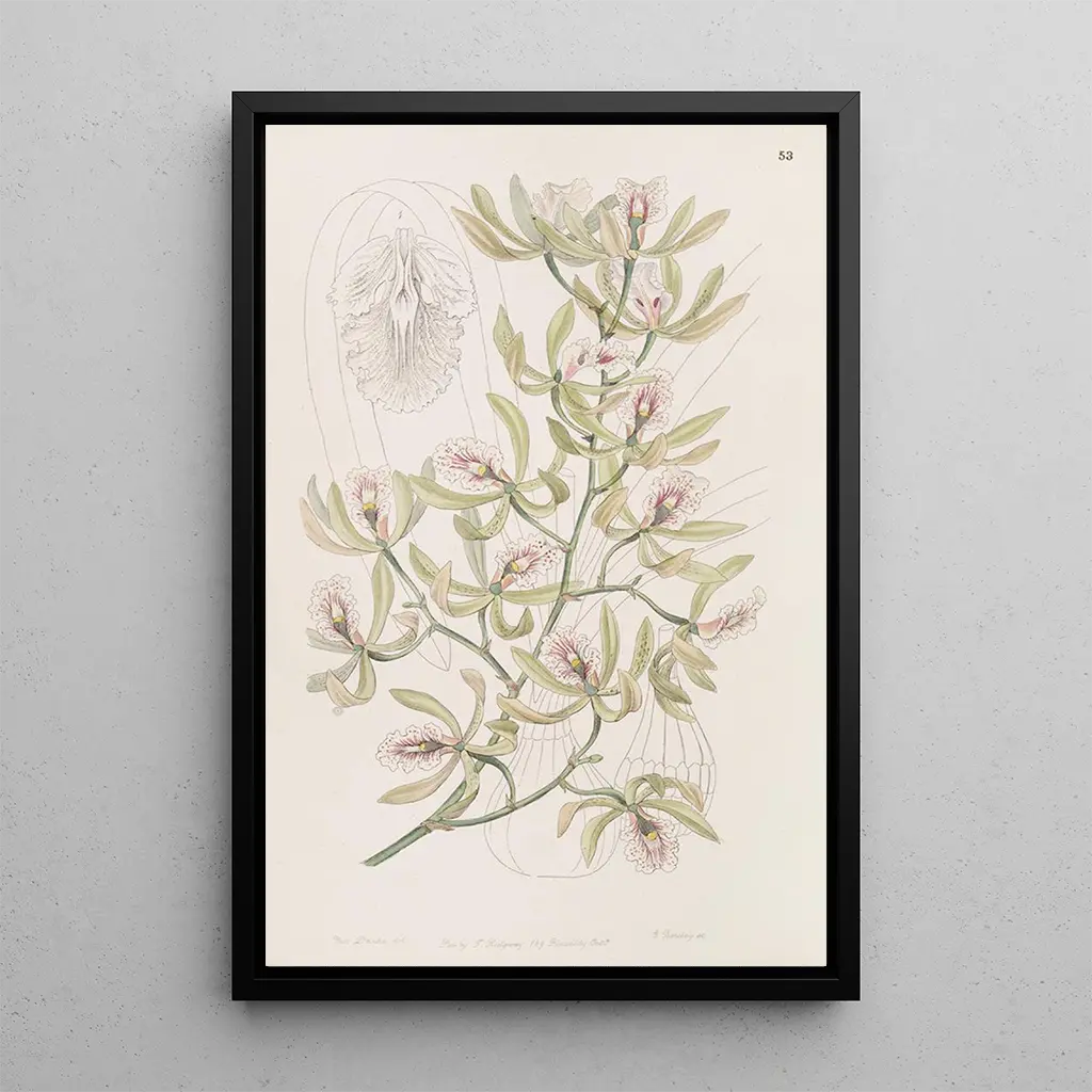 Épidendrum winged: a captivating floral dance The winged Epidendrum, with its delicate petals and vibrant colors, evokes a world of natural beauty. This art print by Sydenham Edwards captures the very essence of tropical flora, where every detail is meticulously rendered. The shades of green and pink blend harmoniously, creating an atmosphere that is both serene and dynamic. The engraving technique, used with precision, highlights the texture of the flowers and leaves, inviting the viewer to immerse themselves in this botanical universe. The piece seems to vibrate with life, as if each flower is ready to bloom before our eyes. Sydenham Edwards: a pioneer of botanical illustration Sydenham Edwards, active in the early 19th century, is recognized for his essential role in botanical illustration. Influenced by the scientific discoveries of his time, he skillfully combined art and science, paying homage to the diversity of plant species. His works, often published in reference books, testify to his meticulousness and passion for nature. Edwards traveled around the world, drawing inspiration from exotic landscapes and rare plants he encountered. His legacy endures, as his illustrations continue to inspire botanists and artists, celebrating the beauty of nature. A decorative acquisition with multiple advantages The art print of the winged Epidendrum is a perfect decorative piece to bring a touch of nature into your interior. Whether in a living room, office, or bedroom, this print will captivate attention and inspire admiration. Its printing quality guarantees faithful reproduction of the colors and details of the original artwork, while offering undeniable aesthetic appeal. By choosing this canvas, you opt for a decoration that combines elegance and serenity, creating a harmonious and inspiring space. The winged Epidendrum is much more than a simple art print; it is an invitation to contemplation and wonder.