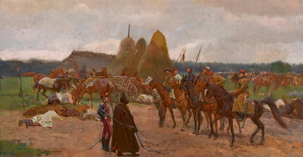 Józef Chełmoński, a Polish artist of the 19th century, is renowned for his works that evoke the struggles and aspirations of his people. Influenced by the tumultuous events of his time, he was able to translate through his painting the emotions and battles of the Polish nation. Chełmoński was also influenced by realism, which allowed him to create works of great narrative strength. "Episode of insurrection" fits into this context, bearing witness to his commitment to his country and his desire to make the voice of the oppressed heard through art.