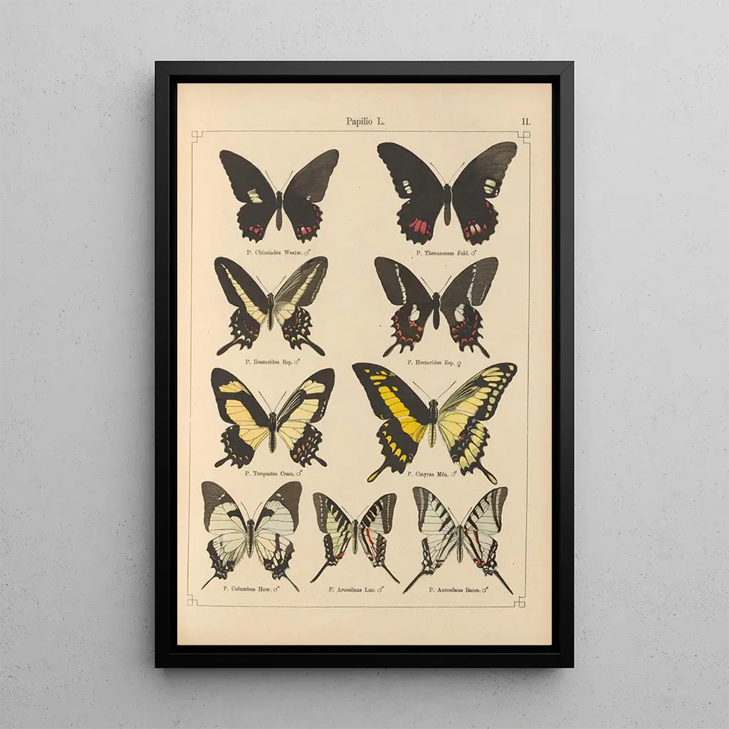 The art print of the work "Papillons exotiques Pl011" transports the viewer into a vibrant world where nature expresses itself through dazzling colors and delicate shapes. Each butterfly, meticulously depicted, seems to come to life on the canvas, creating a light and airy atmosphere. The shades of blue, yellow, and orange blend harmoniously, evoking the ephemeral beauty of these creatures. The artist's technique, which plays with shadows and light, adds a striking depth to the overall composition, inviting prolonged contemplation. Otto Staudinger: a pioneer of naturalist art print Otto Staudinger, active in the 19th century, is recognized for his meticulous and scientific approach to insect representation. Influenced by the naturalist movement, he captured the diversity and beauty of the living world, notably through his illustrations of butterflies. His career spanned a period when interest in nature and biodiversity was booming, allowing his works to stand out for their precision and aesthetic appeal. Staudinger thus contributed to the popularization of artistic entomology, combining science and art with brilliance. A decorative acquisition with multiple advantages The art print of "Papillons exotiques Pl011" is an ideal decorative choice for various spaces such as the living room, office, or even the bedroom. Its printing quality guarantees fidelity to the colors and details of the original work, adding a touch of elegance and freshness to your interior. The aesthetic appeal of this canvas lies in its ability to evoke wonder and create a serene atmosphere. By integrating this artwork into your decor, you give your space an artistic note that is sure to attract attention and inspire contemplation.