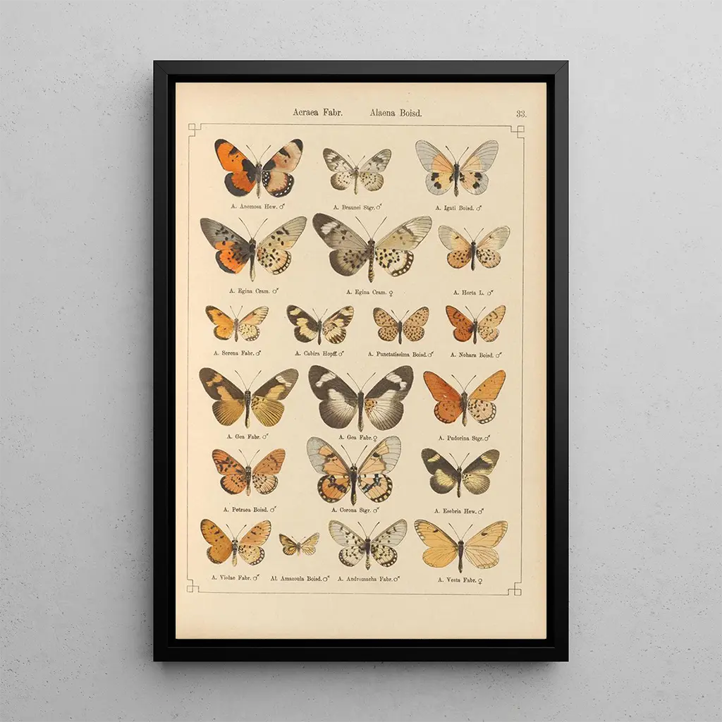 The art print of Exotic Butterflies Pl033 transports us to a universe where nature expresses itself with brilliance and grace. The butterflies, depicted in all their splendor, showcase vivid and varied hues, ranging from fiery red to emerald green. The Staudinger technique, which combines watercolor and drawing, pays tribute to the delicate beauty of these creatures. Every detail, from the wing patterns to the subtle shadows, is carefully crafted, creating an atmosphere that is both dynamic and soothing, perfect for escapism.
