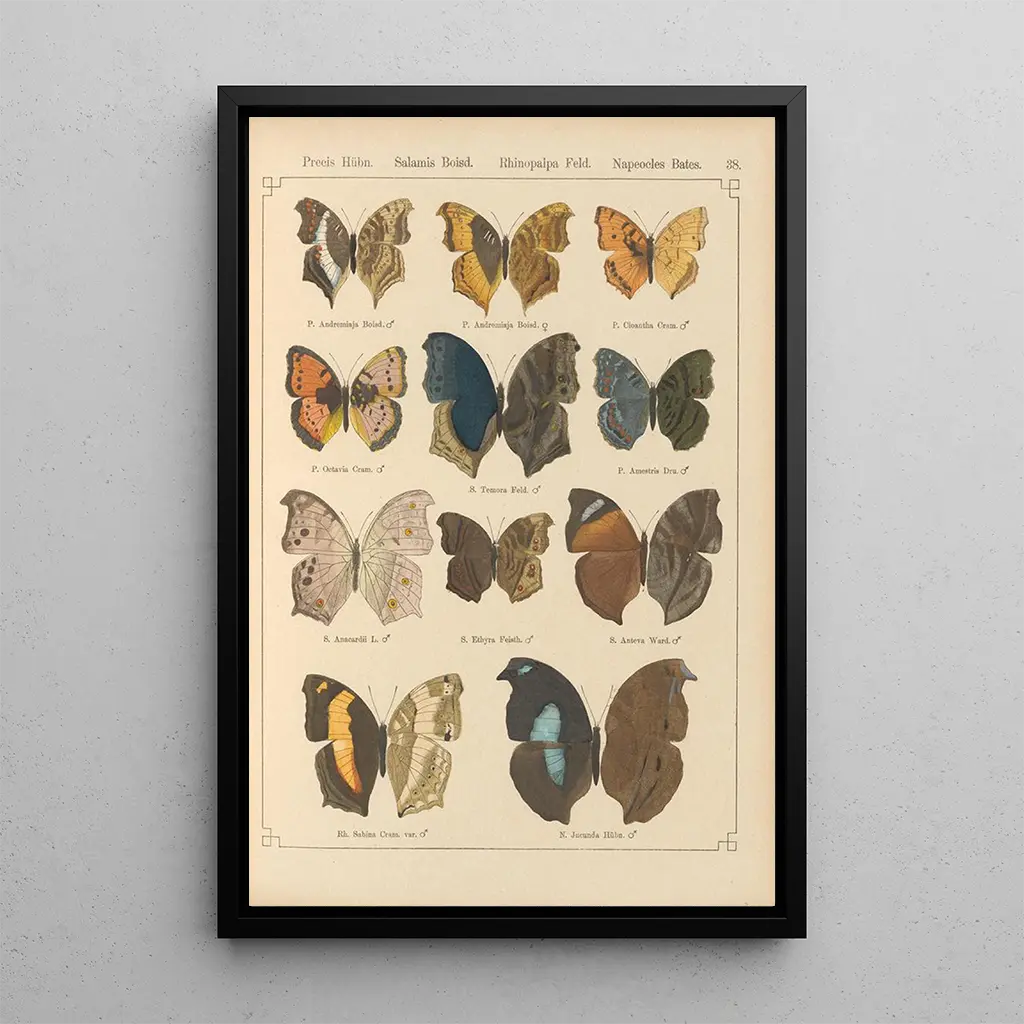 Papillons exotiques Pl038 : une danse colorée de la nature Les "Papillons exotiques Pl038" d'Otto Staudinger capturent l'essence même de la beauté naturelle à travers une explosion de couleurs vibrantes. Chaque détail de ces insectes délicats est minutieusement rendu, révélant des nuances de bleu, de vert et de jaune qui semblent presque luminescentes. La technique de l'artiste, qui mêle précision et sensibilité, crée une atmosphère à la fois sereine et fascinante. Les papillons, figés dans leur vol, invitent le spectateur à s'émerveiller devant la diversité et la splendeur du monde naturel, tout en évoquant une légèreté presque éthérée. Otto Staudinger : un pionnier de l'illustration entomologique Otto Staudinger, actif à la fin du XIXe siècle, est reconnu pour ses contributions à l'illustration scientifique, notamment dans le domaine de l'entomologie. Influencé par les avancées de la science et la fascination victorien pour la nature, il a su allier rigueur scientifique et sens artistique. Ses œuvres, souvent publiées dans des ouvrages spécialisés, témoignent d'un souci du détail et d'une passion pour les insectes, en particulier les papillons. Staudinger a ainsi laissé un héritage durable, influençant non seulement ses contemporains mais aussi les générations futures d'artistes et de scientifiques. Une acquisition décorative aux multiples atouts La reproduction des "Papillons exotiques Pl038" constitue un choix décoratif idéal pour divers espaces, qu'il s'agisse d'un salon, d'un bureau ou d'une chambre. Sa qualité d'impression garantit une fidélité remarquable aux couleurs et aux détails de l'œuvre originale, permettant de profiter pleinement de son attrait esthétique. En intégrant ce tableau dans votre décoration, vous apportez une touche de nature et d'élégance, tout en stimulant la curiosité et l'admiration de vos invités. Cette toile est plus qu'un simple élément décoratif ; elle est une célébration de la beauté du monde naturel.