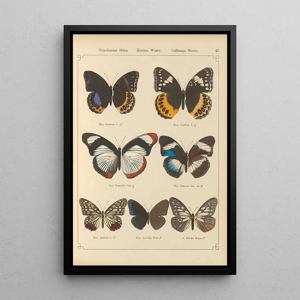 Papillons exotiques Pl047 : an art print paying homage to biodiversity The art print of Papillons exotiques Pl047 transports us into a world where nature expresses itself with brilliance and diversity. The shimmering colors of the wings, ranging from vivid hues to softer shades, create a warm and inviting atmosphere. The watercolor technique, mastered by Otto Staudinger, allows for each detail to be rendered with remarkable precision, capturing the lightness and grace of these insects. This artwork invites escape and contemplation, revealing the ephemeral beauty of butterflies in all their splendor. Otto Staudinger: an artist between science and art Otto Staudinger, a 19th-century illustrator and entomologist, skillfully combined his passions for art and science. His works, often published in scientific publications, testify to a meticulous and respectful approach to nature. Influenced by the artistic currents of his time, he added a personal touch to his illustrations, paying tribute to the richness of biodiversity. Staudinger made his mark by capturing the essence of butterflies, making his works references for art enthusiasts and scientists alike. A decorative acquisition with multiple advantages Choosing the reproduction of Papillons exotiques Pl047 enriches your interior with a piece that combines beauty and elegance. This artwork fits perfectly into various spaces, whether in a living room, office, or bedroom, bringing a touch of nature and color. Its printing quality ensures fidelity to the details of the original work, while offering undeniable aesthetic appeal. This canvas is much more than a simple decorative element; it is a celebration of natural beauty that will captivate all viewers.