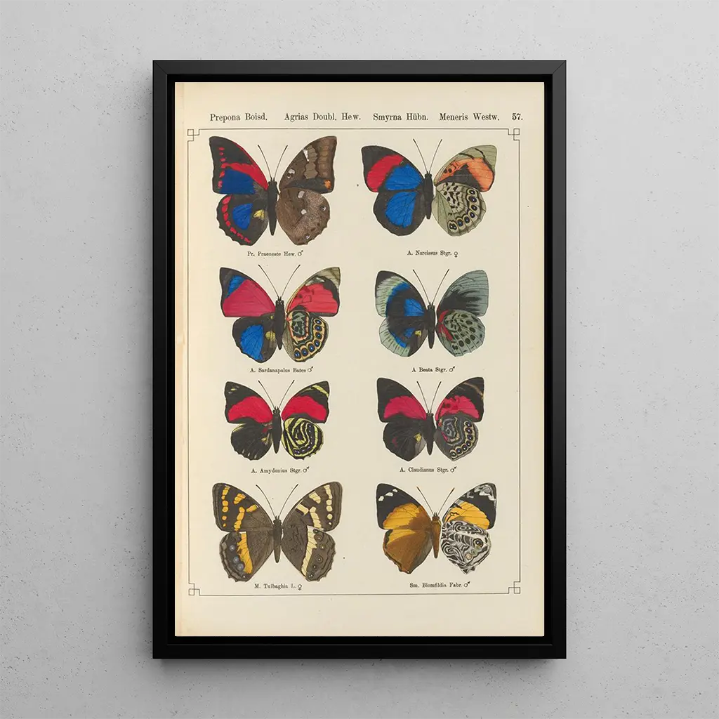 The "Papillons exotiques Pl057" by Otto Staudinger capture the very essence of natural beauty. This art print, rich in vivid colors and meticulous details, evokes a world where butterflies seem to come to life. The vibrant shades of blue, yellow, and red blend harmoniously, creating a lively and joyful atmosphere. The watercolor technique, used with finesse, allows the translucent wings of the butterflies to be rendered, adding an almost ethereal dimension to the composition. Every element of this art print invites wonder, transporting the viewer to a lush garden where nature expresses itself in all its splendor.