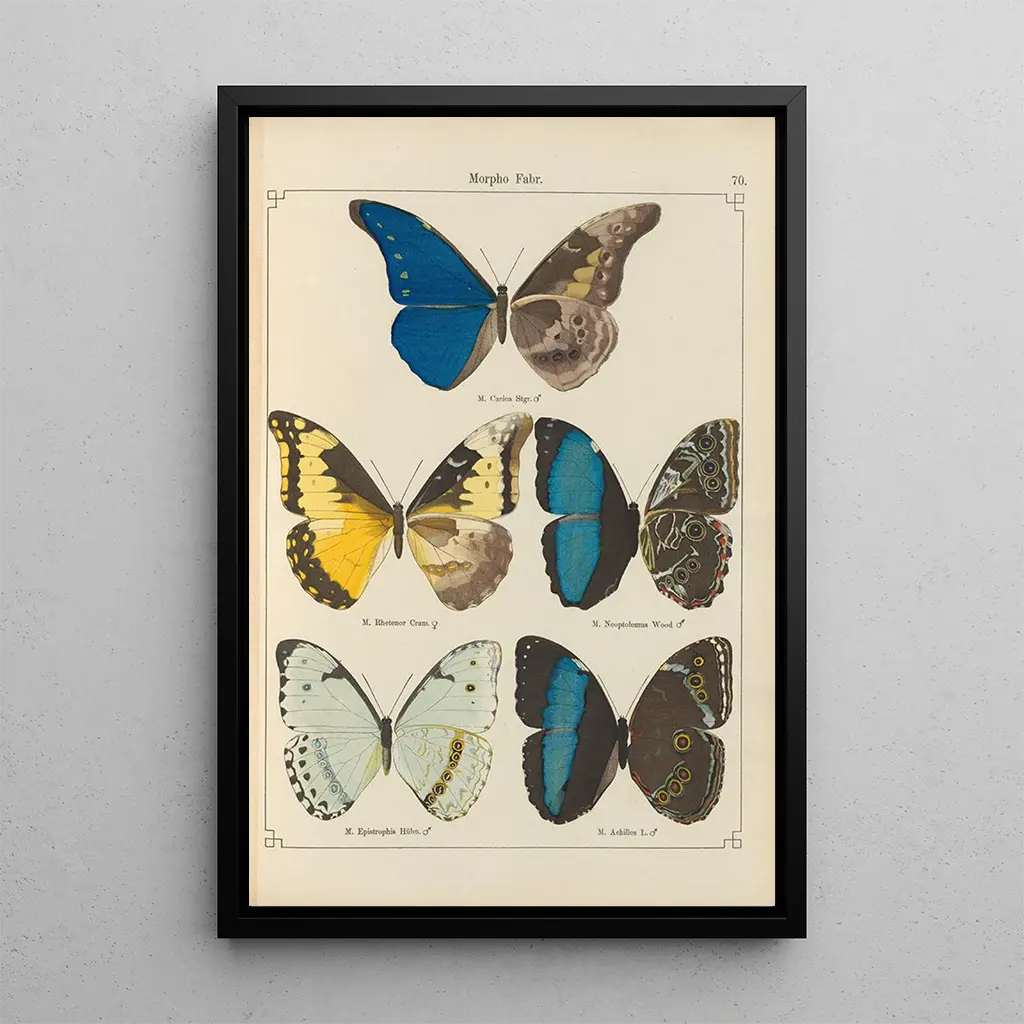 Papillons exotiques Pl070 : a dance of colors and lightness The art print of "Papillons exotiques Pl070" by Otto Staudinger is a visual celebration of the lightness and grace of butterflies. The vibrant hues, ranging from emerald greens to fiery reds, unfold on the canvas with such liveliness that they seem almost to come alive. The watercolor technique, mastered by Staudinger, captures the transparency of the wings and the delicacy of the patterns, creating a dreamlike atmosphere. Each butterfly, frozen in a moment of flight, invites wonder and exploration of the marvels of nature. Otto Staudinger: an artist dedicated to nature Otto Staudinger, 19th-century illustrator and naturalist, marked his era with precise and poetic representations of insects. His work is set in a context where interest in nature and science was booming, influenced by discoveries in biology and scientific expeditions. Staudinger skillfully combined a rigorous scientific approach with artistic sensitivity, creating works that are both informative and aesthetic. His butterfly illustrations, such as "Papillons exotiques Pl070," testify to his passion for biodiversity and his desire to share the beauty of the natural world with the public. A decorative acquisition with multiple assets The art print of "Papillons exotiques Pl070" is an ideal decorative choice for those wishing to bring a touch of nature into their interior. Whether in a living room, office, or bedroom, this artwork enriches the space with vibrant colors and delicate patterns. Its printing quality ensures remarkable fidelity to the original work, making each viewing a new discovery. By integrating this canvas into your decor, you create a warm and welcoming atmosphere, while celebrating the ephemeral beauty of butterflies. This art print is much more than simple decoration; it is an invitation to contemplation and escape into the heart of nature.