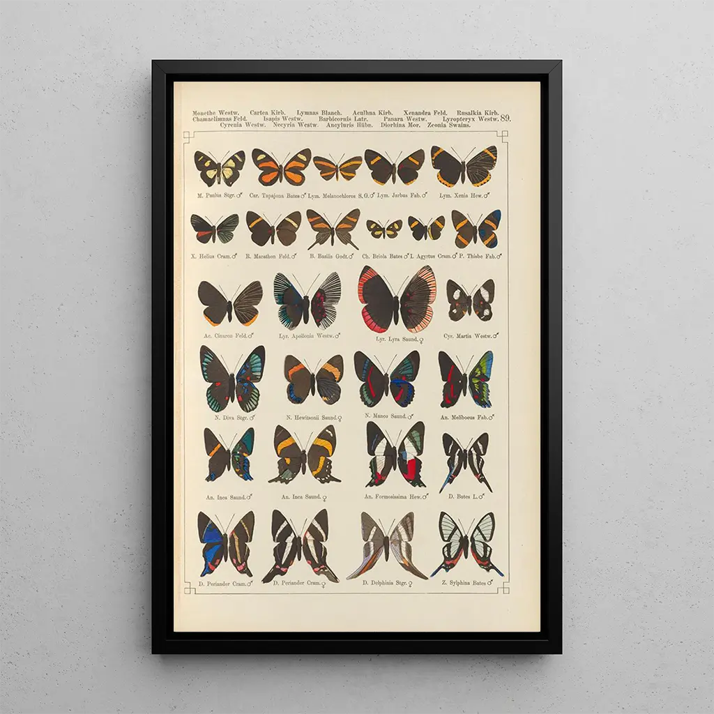 The "Exotic Butterflies Pl089" by Otto Staudinger reveal a fascinating world where nature expresses itself in all its splendor. This art print, rich in detail, features butterflies with intricate patterns and vibrant colors, creating a lively and joyful atmosphere. The watercolor technique, used with finesse, captures the lightness and transparency of the wings, giving the impression that these creatures are ready to take flight. Each brushstroke seems to tell a story, inviting the viewer to dive into an enchanting universe.