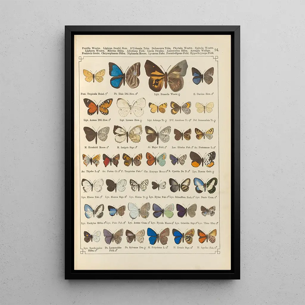 The art print Papillons exotiques Pl094 reveals a vibrant world where nature is adorned with dazzling colors. The delicate wings of the butterflies, meticulously depicted, seem almost to flutter under the light. Shades of blue, yellow, and orange intertwine harmoniously, creating an atmosphere that is both joyful and soothing. The watercolor technique, with its subtle gradients, gives this piece an airy lightness, inviting the viewer to immerse themselves in the fascinating universe of insects. Every detail, from the wing patterns to the delicate shadows, reflects careful observation and a deep respect for natural beauty. Otto Staudinger: the master of butterflies Otto Staudinger, a German artist of the 19th century, is renowned for his ability to capture the ephemeral beauty of butterflies. Working at a time when the study of nature was flourishing, he drew inspiration from the works of contemporary naturalists to create pieces that blend art and science. His passion for entomology is evident in his paintings, where each species is depicted with remarkable accuracy. Staudinger successfully combined his love for nature with a keen artistic sense, leaving a lasting legacy in the field of naturalist art. His works, like this art print, continue to amaze and inspire art and nature enthusiasts. A decorative acquisition with multiple advantages The art print Papillons exotiques Pl094 is an ideal decorative piece for any living space. Whether in a living room, office, or bedroom, this artwork adds a touch of freshness and elegance. Its printing quality guarantees faithful reproduction of the colors and details of the original piece, allowing you to enjoy the beauty of nature every day. The aesthetic appeal of this canvas is sure to attract attention and spark conversations. By incorporating this art print into your decor, you not only acquire a work of art but also an invitation to celebrate the diversity and splendor of the natural world.