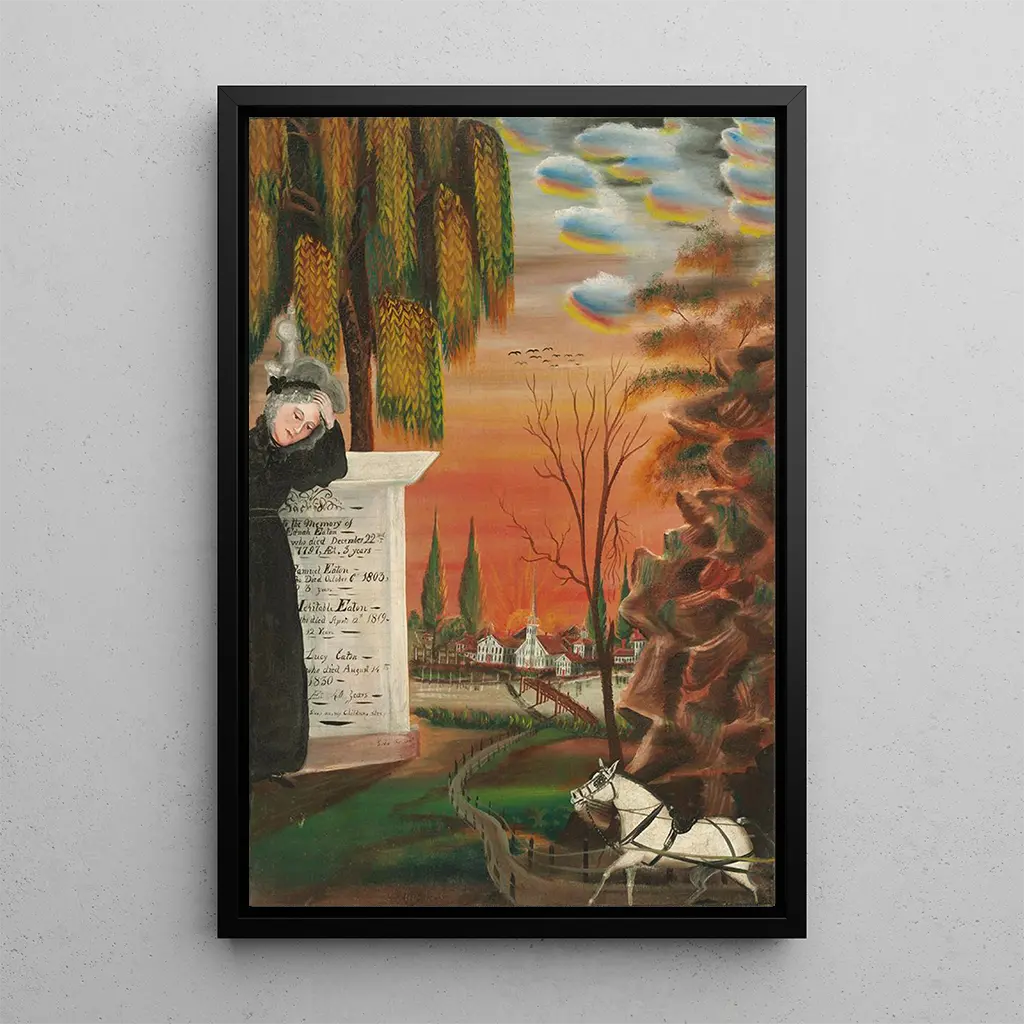 The art print "Memorial of the Eaton family" evokes an atmosphere filled with melancholy and reverence. The soft colors and shades of gray create a sense of serenity, while the harmonious composition draws the eye toward the central figures, symbols of the family. The oil painting technique used by Samuel Jordan allows for capturing delicate details of the faces and clothing, making the work both realistic and emotive. This art print, a true ode to memory, invites viewers to reflect on the passage of time and the importance of family bonds.