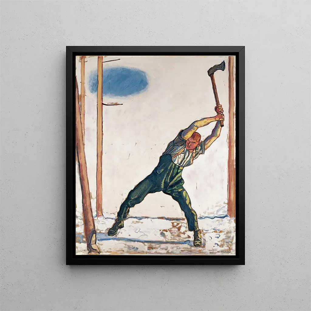 Ferdinand Hodler, an emblematic figure of Swiss art, managed to mark his era with a unique and bold vision. Influenced by symbolism and post-impressionism, he developed a personal style that allows him to explore profound themes such as life, death, and nature. His work goes beyond simple representation; it is part of a spiritual and existential quest. Through "Lumberjack," Hodler does not merely depict a man at work but evokes a reflection on human effort in the face of nature's forces. His influence extends well beyond Swiss borders, inspiring many artists around the world, who see in