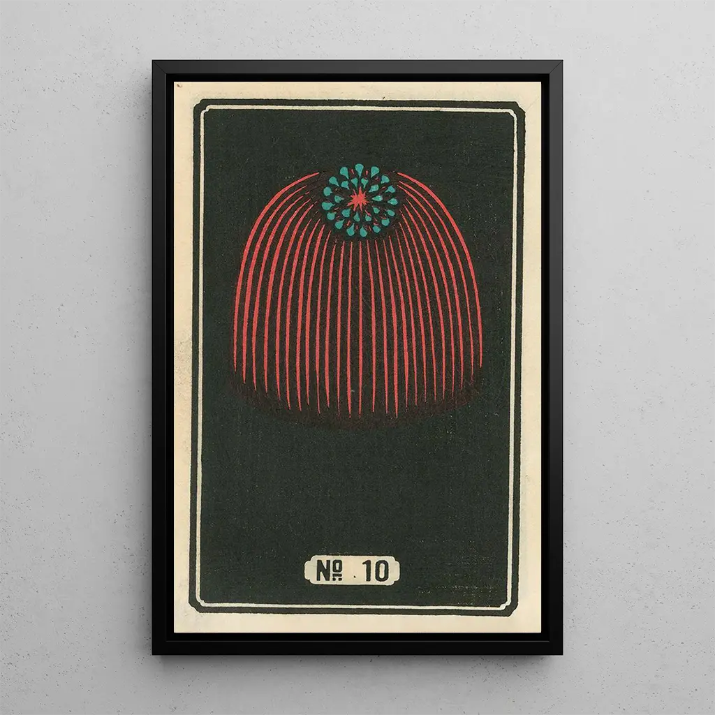 The art print of the painting "Nocturnal Fireworks No. 10" is an ideal choice to enhance your interior, whether in a living room, office, or bedroom. Its high-quality printing faithful to the original colors guarantees an exceptional rendering, bringing a touch of dynamism and joy to your decor. The aesthetic appeal of this canvas makes it a captivating focal point, inspiring admiration from your guests. By integrating this artwork into your space, you are not just adding simple decoration but also inviting a piece of Japanese culture and its festive traditions into your daily life.