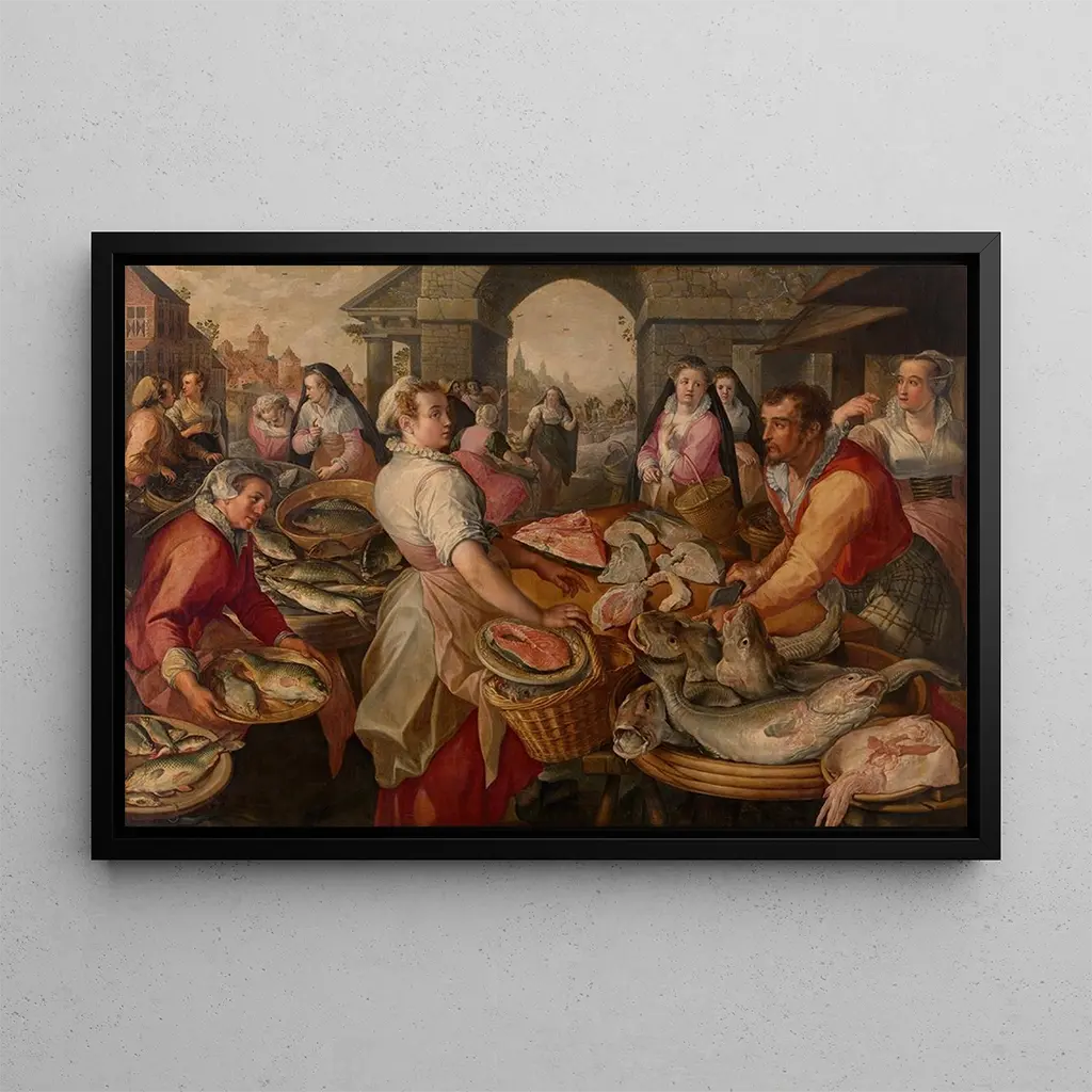 Fish Market: a lively scene of everyday life The art print "Fish Market" by Joachim Beuckelaer depicts a vibrant and bustling scene, where one can almost hear the hustle and bustle of the market. The rich and vivid colors, ranging from deep reds to bright blues, create a warm and welcoming atmosphere. Beuckelaer's technique, characterized by meticulous realism, captures the details of the fish, seafood, and the characters interacting within this setting. Each element is carefully arranged, offering a harmonious composition that draws the eye and invites contemplation of daily life in the 16th century. Joachim Beuckelaer: a master of Flemish realism Joachim Beuckelaer, a 16th-century Flemish painter, is renowned for his representations of market scenes and still life. Influenced by Pieter Aertsen's style, Beuckelaer developed a unique approach that combines rich colors with a keen attention to detail. Active in Antwerp, he contributed to the rise of genre painting, highlighting everyday life and simple pleasures of the period. His works, often laden with symbolism, also reflect the economic prosperity of the Netherlands during the Renaissance, making him an important figure in Flemish art. A decorative art print with multiple virtues The reproduction of "Fish Market" is an ideal decorative piece to enhance your interior, whether in a living room, office, or bedroom. Its print quality and fidelity to the original artwork guarantee undeniable aesthetic appeal. By integrating this art print into your decor, you bring a touch of history and culture that will inspire admiration from your guests. Beuckelaer's dynamic and colorful scene will undoubtedly add a warm and convivial atmosphere to your living space.