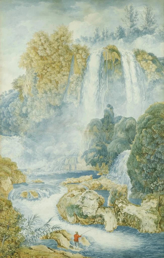 Art print Fisherman at the foot of a waterfall - Franz Kaisermann | Art print