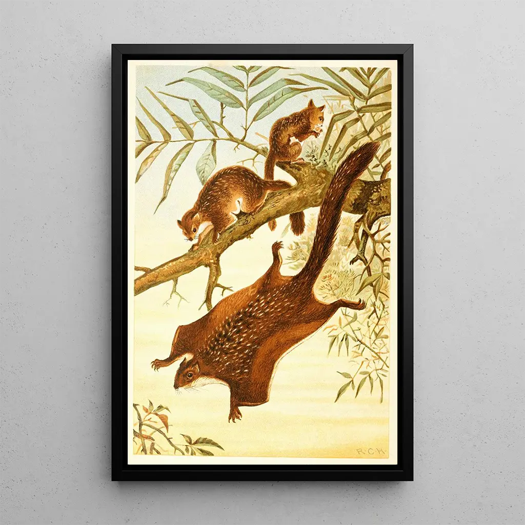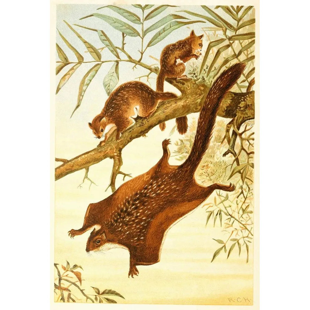 The artist of this work, though remaining anonymous, offers us a valuable glimpse into animal art, which has endured through the centuries. This depiction of the squirrel in flight fits within an artistic tradition where fauna is highlighted, often to celebrate the beauty and diversity of nature. The influences of the period, marked by a growing interest in observing animals in their natural habitat, are palpable. Artists of this era sought to capture not only the external appearance of creatures but also their essence, movement, and interaction with their environment. This painting bears witness to this artistic quest, while remaining accessible and timeless.