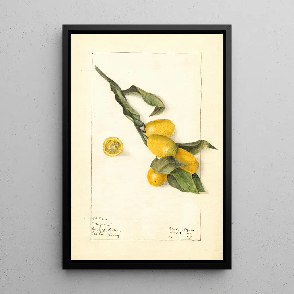 Fortunella Nagami : an ode to the delicacy of citrus fruits The art print Fortunella Nagami by Elsie E. Lower captures the subtle beauty of this small citrus fruit, often overlooked. With vibrant colors ranging from bright green to golden yellow, this canvas evokes an atmosphere of freshness and lightness. The artist's technique, blending watercolor and oil painting, brings to life the delicate textures of the fruit's skin, while creating a captivating play of light. Soft shadows and luminous reflections add an almost tactile dimension to the piece, inviting the viewer to immerse themselves in a world of gustatory and visual sensations. Elsie E. Lower : a pioneer of modern still life Elsie E. Lower, active in the early 20th century, is recognized for her innovative approach to still life. Influenced by the artistic movements of her time, she skillfully integrated elements of realism and impressionism into her works. Her passion for botany and attention to detail make her an important figure in the field of floral art. Lower often explored themes of nature and ephemeral beauty, which allowed her to stand out in a rapidly evolving artistic environment. Her ability to capture the essence of plants and fruits demonstrates a unique sensitivity to nature. A decorative acquisition with multiple advantages The art print of the Fortunella Nagami painting is an ideal choice to enhance your interior. Whether in a bright living room, an inspiring office, or a calming bedroom, this canvas adds a touch of freshness and color. Its printing quality guarantees remarkable fidelity to the details of the original work, allowing you to enjoy its aesthetic appeal daily. By adding this piece to your decor, you create a space that celebrates the beauty of nature while offering a warm and welcoming atmosphere.