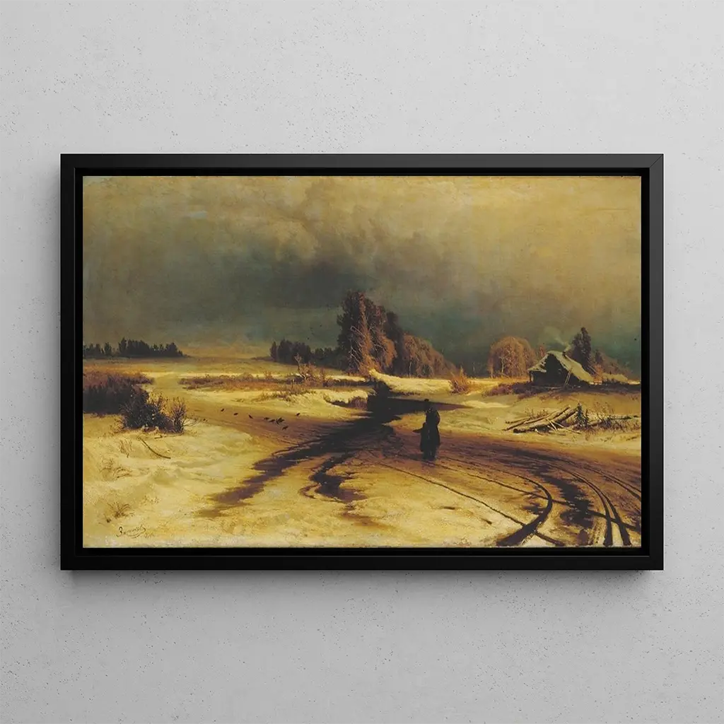 The canvas "Spring Thaw" by Fyodor Vasilyev is a vibrant depiction of awakening nature, marking the transition between winter and spring. The warm and luminous hues evoke the gentle warmth of the first sunny days, while the meticulous details of the melting snow-covered landscapes add a realistic dimension to the artwork. Vasilyev's technique, blending impressionism and realism, creates a dynamic and lively atmosphere, where each brushstroke seems to capture the movement of nature. This art print invites you to celebrate renewal and the fleeting beauty of the season.