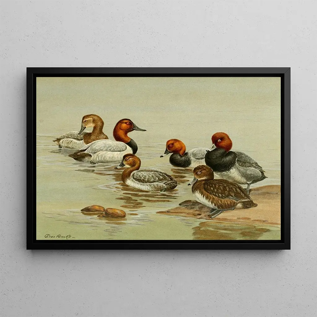 Fuligule Milouin: a vibrant painting of aquatic life The "Fuligule Milouin" painting by Allan Brooks captures the very essence of nature through a striking depiction of this diving duck. The vivid colors and delicate shades of blue and green evoke the reflections of water, while the meticulous details of the feathers add a realistic dimension to the artwork. The skillful use of watercolor technique creates a peaceful and contemplative atmosphere, inviting the viewer to immerse themselves in this natural habitat. The balanced composition, centered on the tufted duck, immediately draws the eye and conveys a sense of tranquility. Allan Brooks: a pioneer of artistic ornithology Allan Brooks, a Canadian artist and ornithologist of the early 20th century, skillfully combined his passion for birds with his artistic talent. Influenced by Canadian landscapes and the wildlife that inhabits them, he dedicated his career to immortalizing the beauty of birds in their natural environment. His work stands out for its attention to detail and scientific approach, which allowed him to become a reference in the field of ornithological illustration. At a time when art and science intersected, Brooks left a lasting legacy, inspiring many generations of artists and naturalists. A decorative acquisition with multiple assets The art print of "Fuligule Milouin" is an ideal decorative piece to enhance your interior, whether in a living room, office, or bedroom. Its print quality and fidelity to the original colors guarantee undeniable aesthetic appeal. By choosing this art print, you bring a touch of nature and serenity to your space, while celebrating wildlife art. This canvas pairs perfectly with various styles of decoration, from classic to contemporary, and will appeal to art and nature enthusiasts.
