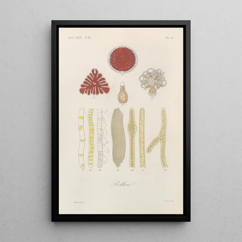 The art print of the painting Traité de botanique générale Pl062 takes us on a visual journey through the richness of plant shapes and colors. François Hérincq, with his unmatched talent, manages to capture the very essence of plants, paying tribute to their natural beauty. The vibrant hues and precise details create a lively, almost tangible atmosphere, where each flower seems to vibrate with life. The composition, carefully orchestrated, invites exploration and discovery, making this work a true botanical treasure. François Hérincq: art in the service of science François Hérincq, an emblematic figure of the 19th century, left a mark on the history of botanical art with his unique approach. Rooted in the artistic currents of his time, he skillfully combined scientific rigor with aesthetic sensitivity. His works, often intended for botanical publications, reflect an era when observing nature was essential. Hérincq was influenced by advances in botany, which enabled him to create illustrations of remarkable precision. His legacy endures, inspiring many artists and scientists around the world. A decorative acquisition with multiple advantages The art print of the painting Traité de botanique générale Pl062 is a perfect decorative choice to enhance your interior, whether in a living room, office, or bedroom. Its print quality ensures exceptional fidelity to colors and details, allowing this piece to harmoniously integrate into any type of decor. The aesthetic appeal of this canvas lies in its ability to bring a touch of nature and serenity to your space. By choosing this art print, you give your walls a piece of art that celebrates the beauty of botany while adding an artistic dimension to your environment.