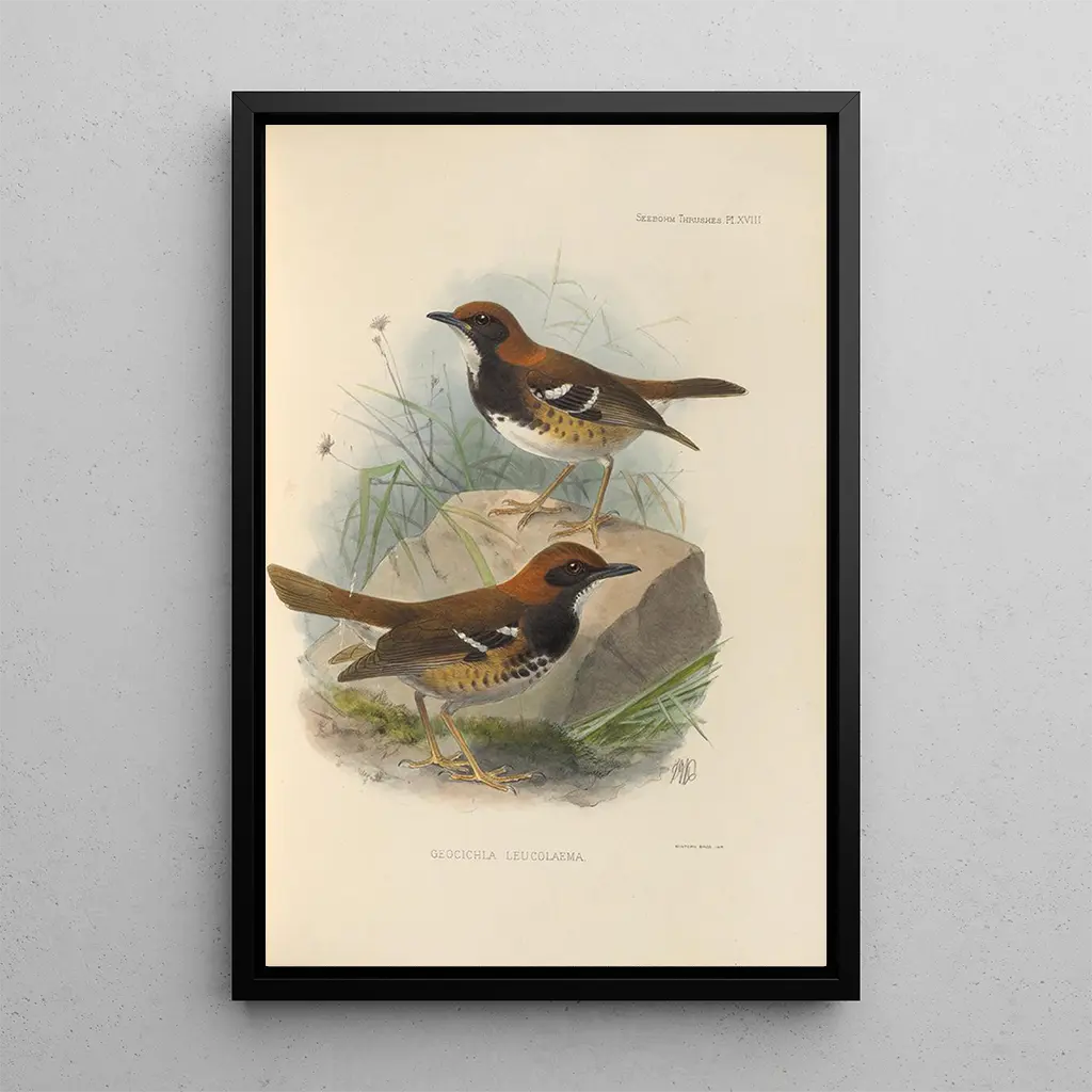 Henry Seebohm, a 19th-century ornithologist and artist, masterfully combined a passion for birds with artistic talent. His explorations around the world, notably in Asia and Europe, enriched his knowledge and influenced his style. Seebohm is recognized for his precise and poetic illustrations, which testify to his commitment to conservation of nature. At a time when ornithology was beginning to take shape, his works played a key role in raising awareness of the beauty and diversity of avian species. The art print of Geocichla Leucolaema thus fits into a valuable artistic and scientific heritage.