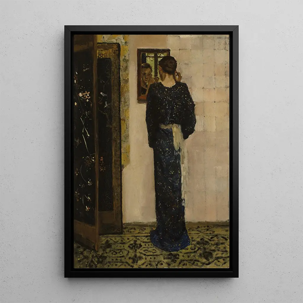 George Hendrik Breitner, born in 1857 in Rotterdam, is one of the most influential artists of the Dutch realist movement. Trained at the Academy of Fine Arts, he was heavily influenced by masters such as Rembrandt and Vermeer, while incorporating elements of modernity of his time. His career, marked by travels to Paris and encounters with other artists, allowed him to explore various styles, ranging from realism to impressionism. The art print of The earring, created in the 1890s, demonstrates his skill in capturing moments of everyday life with a unique sensitivity, making him a key figure in Dutch art.