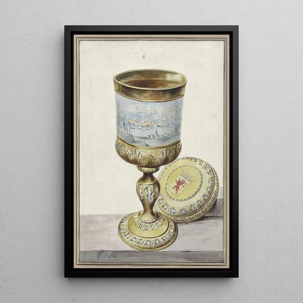 Gold cup with lid: a touch of refinement and delicacy The art print of the Gold cup with lid immerses us in a world of luxury and elegance. This artwork, created with meticulous technique, highlights warm, golden hues that shimmer in the light. The ornamental details, finely crafted, evoke exceptional craftsmanship, while the harmonious composition draws the eye and invites admiration. Every element of this piece seems to tell a story, that of a refined way of life, where each object is a centerpiece of decoration. Aert Schouman: a 17th-century master with diverse influences Aert Schouman, Dutch painter of the 17th century, is renowned for his works that combine realism and baroque ornamentation. Influenced by the artistic currents of his time, he captured the beauty of everyday objects, transforming them into true works of art. His career flourished in a context where still life art was thriving, and he distinguished himself by his ability to play with light and textures. Schouman was also inspired by travels and cultural exchanges, which allowed him to incorporate exotic elements into his creations. A decorative acquisition with multiple assets The art print of the Gold cup with lid is a decorative piece that will enhance any interior, whether in a living room, office, or bedroom. Its print quality and fidelity to the original details make it an ideal choice for art enthusiasts. This artwork adds a touch of elegance and sophistication, while also serving as an excellent conversation piece. With its undeniable aesthetic appeal, it fits perfectly into various decor styles, adding a note of charm and refinement to your living space.