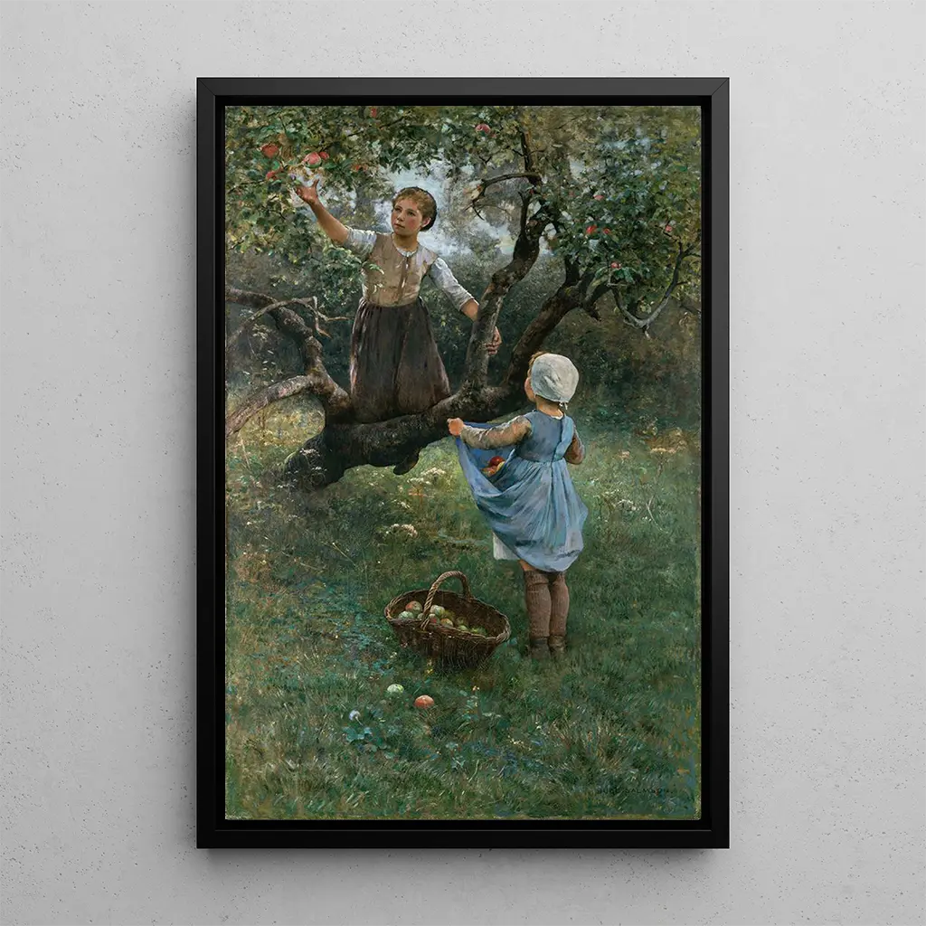 The reproduction of "Girls Picking Fruits" is a charming addition to any interior decoration, whether in a living room, dining room, or bedroom. Its quality of reproduction guarantees fidelity to the colors and details of the original, bringing a touch of freshness and lightness to your space. This art print, with its joyful atmosphere and refined aesthetic, will appeal to art and nature lovers, while awakening memories of carefree innocence and simple beauty.