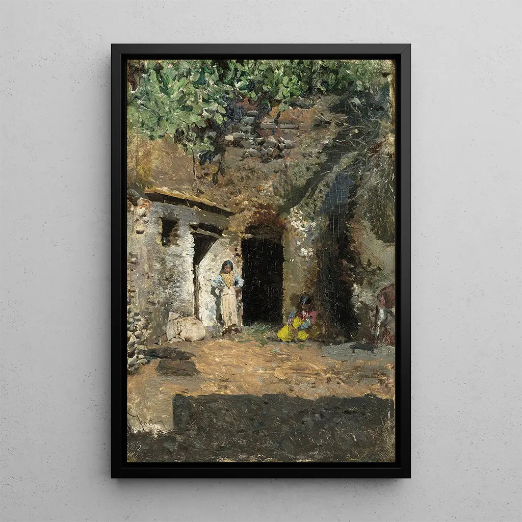 "Grottes gitanes Grenade" is an iconic art print by Mariano Fortuny Marsal that immerses us in the fascinating world of gypsy culture. This painting, rich in colors and emotions, depicts vibrant scenes of life, where the characters seem to dance to the rhythm of flamenco music. The shades of earth and blue create an atmosphere that is both intimate and dynamic, capturing the very essence of life in the caves of Granada. Fortuny, with his unparalleled talent for light, manages to bring every detail to life, making this art print deeply immersive and poetic.