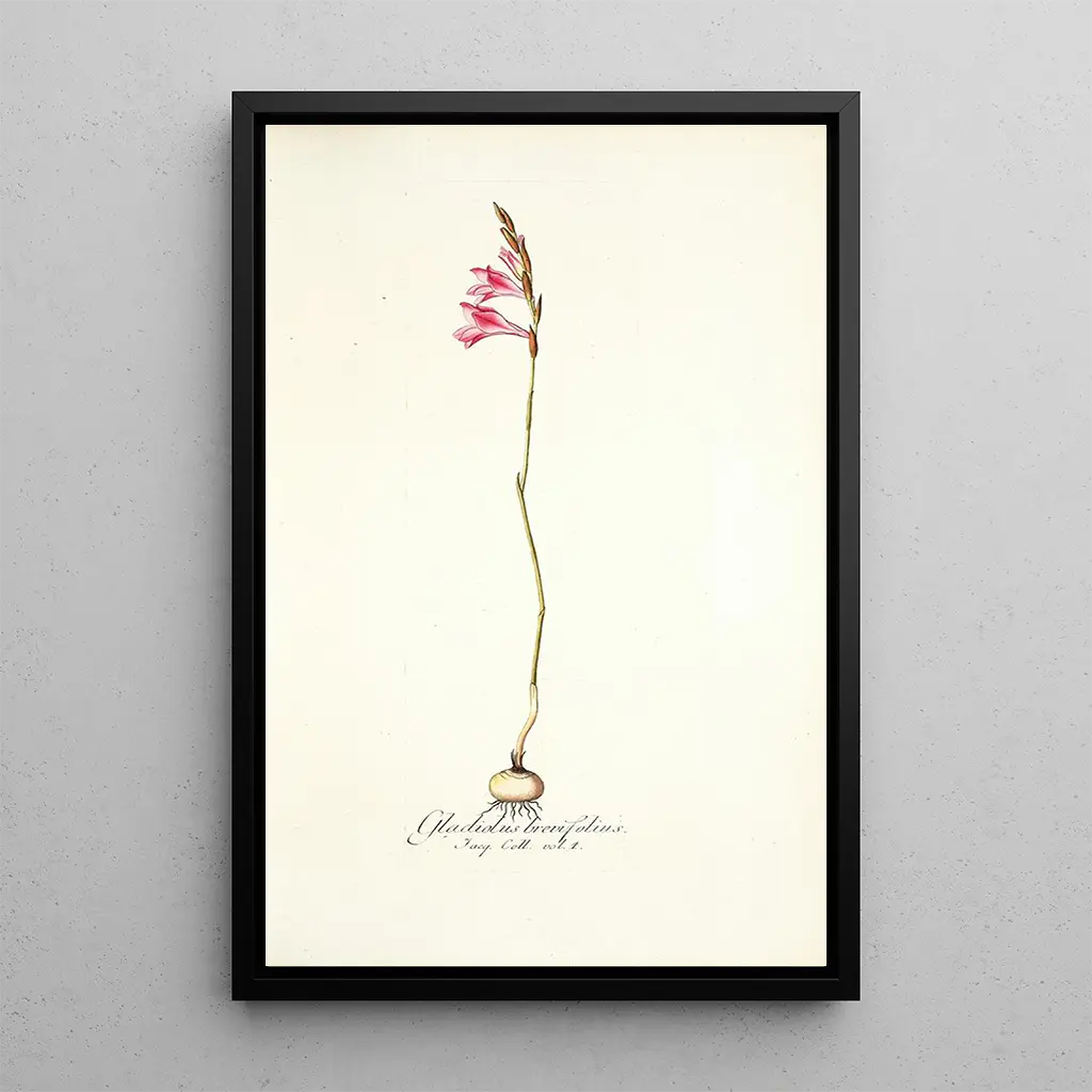 Nikolaus Joseph Freiherr von Jacquin, an 18th-century botanist and artist, played a crucial role in the study of exotic plants. Originating from Austria, he traveled around the world, collecting specimens and creating illustrations that marked his era. Influenced by the movement of science and art, Jacquin mastered combining scientific precision with aesthetic appeal in his works. His work contributed to the knowledge of plants and the growth of botany in Europe, making him an emblematic figure of floral art. Gladiolus brevifolius is one of many testimonies to his talent and dedication to nature.