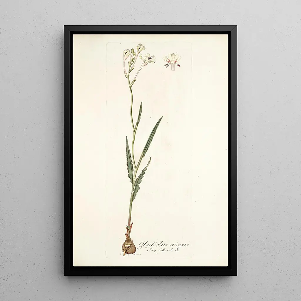 Gladiolus crispus : a celebration of floral beauty The art print of Gladiolus crispus immerses us in a world of vibrant colors and intricate details. This work by Nikolaus Joseph Freiherr von Jacquin highlights the delicacy of the petals, which seem almost tangible. The shades of pink and yellow intertwine harmoniously, creating an atmosphere that is both joyful and soothing. The watercolor technique used by the artist allows for a subtle capture of light, bringing this fascinating plant to life. Each brushstroke reveals a particular attention to detail, inviting the viewer to admire the ephemeral beauty of nature. Nikolaus Joseph Freiherr von Jacquin : a pioneer of botanical illustration Nikolaus Joseph Freiherr von Jacquin, botanist and artist of the 18th century, played a key role in the development of botanical illustration. Trained in Vienna, he was influenced by the scientific discoveries of his time and traveled across Europe and the Caribbean to study the flora. His works, including Gladiolus crispus, testify to his commitment to documenting plant diversity with precision and aesthetic appeal. As a member of the Academy of Sciences, Jacquin contributed to botanical knowledge while combining science and art, leaving a lasting legacy in the world of botany. A decorative acquisition with multiple advantages Choosing an art print of Gladiolus crispus is a wise choice to enhance your interior. Whether in a living room, office, or bedroom, this piece adds a touch of freshness and vitality. Its printing quality guarantees fidelity to the colors and details of the original work, allowing you to appreciate each nuance as if contemplating the original. The aesthetic appeal of this canvas lies in its ability to harmoniously integrate into various decorating styles, whether modern or classic, while inspiring admiration from your guests.