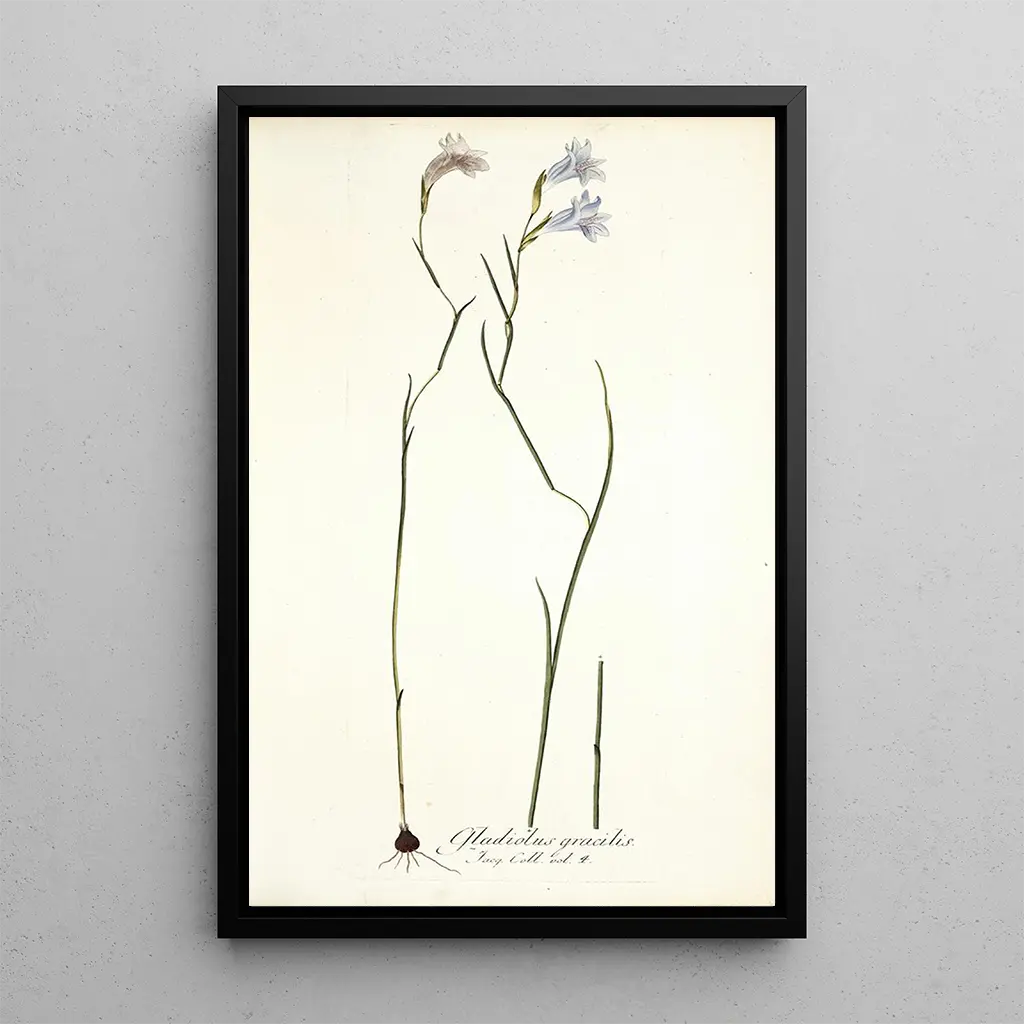 Gladiolus gracilis : an ode to floral elegance The art print Gladiolus gracilis, by Nikolaus Joseph Freiherr von Jacquin, is a true tribute to the finesse and delicacy of flowers. With its pastel shades and elegant composition, this reproduction invites contemplation and wonder. The artist's technique, blending watercolor and drawing, pays homage to the ephemeral beauty of nature. Every detail, from the petals to the stems, is carefully depicted, creating a serene and poetic atmosphere that transports the viewer to a secret garden. Nikolaus Joseph Freiherr von Jacquin : a master of botany and art Nikolaus Joseph Freiherr von Jacquin, an 18th-century botanist and artist, played a key role in the study of plants and their artistic representation. His travels around the world allowed him to discover a multitude of floral varieties, which he immortalized with remarkable precision. Gladiolus gracilis fits into an era where art and science converged, and his unique style reflects this fusion. Jacquin thus left a lasting legacy, influencing both botanists and artists through the centuries. A decorative acquisition with multiple assets The art print of Gladiolus gracilis is a perfect addition to any interior decor. Whether in a living room, office, or bedroom, this piece adds a touch of lightness and elegance. Its printing quality ensures fidelity to the nuances and details of the original work, offering undeniable aesthetic appeal. By integrating this canvas into your space, you create a harmonious and inspiring atmosphere, while celebrating the beauty of nature in everyday life.