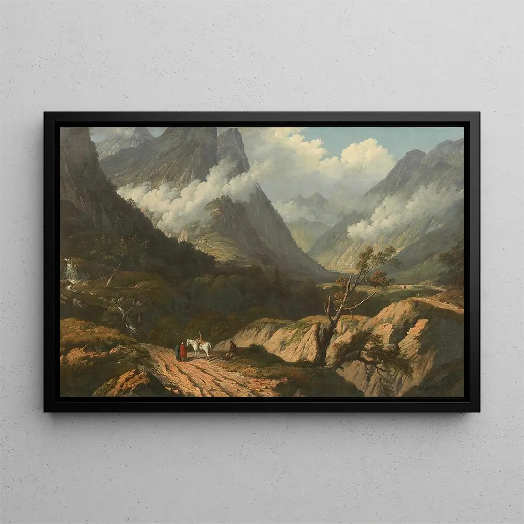 The art print of "Glencoe" transports the viewer to the heart of the Scottish Highlands, where wild beauty of the mountains blends with an atmosphere of mystery. The dark hues and striking contrasts between shadows and light bring this grand landscape to life. The details of the rocks and valleys demonstrate technical mastery that pays homage to raw and untamed nature. This painting evokes an invitation to escape, to discover these legendary and epic storytelling places.