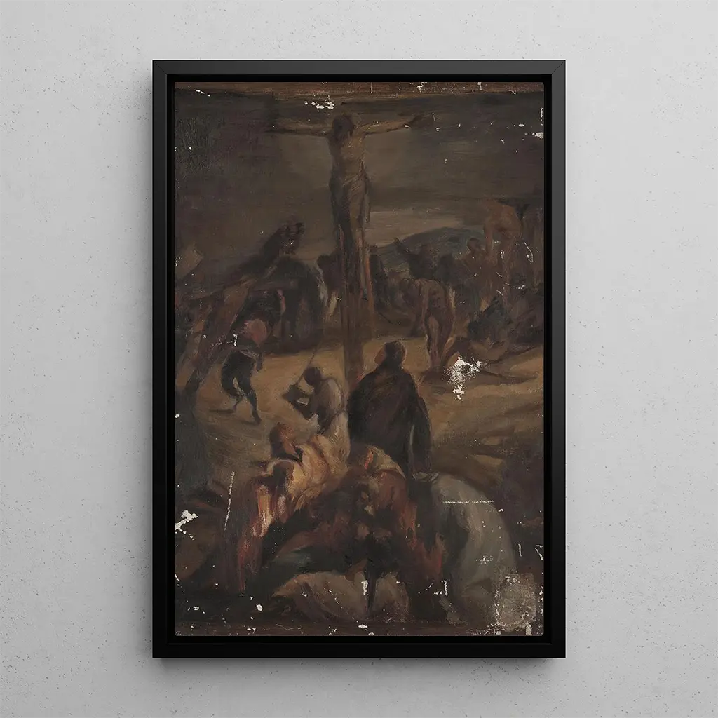 The art print of "Golgotha" by Jan Cybis is a powerful piece that evokes pain and redemption. The canvas portrays a dramatic scene, where human figures are immersed in an intense struggle, surrounded by a dark and tumultuous landscape. The dark colors, dominated by shades of black and red, emphasize the tragic atmosphere of the work. Cybis's technique, marked by expressive strokes and a dynamic composition, captures the very essence of human suffering. This artwork invites viewers to reflect on universal themes such as faith, pain, and hope.