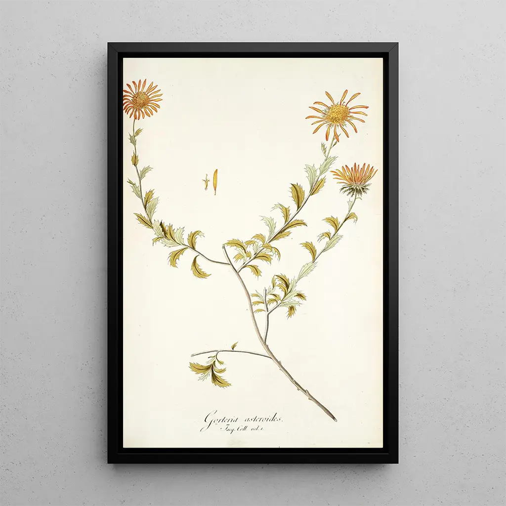 Gorteria asteroides: a marvel of nature revealed The art print of Gorteria asteroides, a work by botanist and artist Nikolaus Joseph Freiherr von Jacquin, immerses us in a floral universe of great delicacy. This canvas, rich in detail, highlights the vibrant nuances of the petals and the complexity of the shapes. The colors, ranging from bright yellow to deep violet, create an atmosphere that is both joyful and soothing. The watercolor technique, mastered by Jacquin, captures the lightness and transparency of the flowers, inviting the viewer to attentive contemplation. Each brushstroke seems to capture the very essence of this rare plant, revealing the ephemeral beauty of nature. Nikolaus Joseph Freiherr von Jacquin: a pioneer of artistic botany Nikolaus Joseph Freiherr von Jacquin, active in the 18th century, is recognized for his contributions to botany and art. Originating from Austria, he was influenced by the scientific currents of his time, notably the movement of plant species classification. As a botanist, he traveled to colonies, collecting specimens and illustrating them with remarkable precision. His works, such as Gorteria asteroides, testify to the importance of nature in art and the need to preserve biodiversity. Jacquin thus marked his era by combining science and aesthetics, making his art prints references both artistic and scientific. A decorative acquisition with multiple assets The art print of Gorteria asteroides is an ideal decorative piece to bring a touch of nature to your interior. Whether in a living room, office, or bedroom, this artwork will appeal through its quality and fidelity to the original work. The vivid colors and meticulous details will attract attention and spark conversations. By choosing this canvas, you opt for a decoration that combines culture and aesthetics, while paying tribute to the beauty of flora. This piece is not only a decorative addition but also a reminder of the importance of nature in our daily lives.