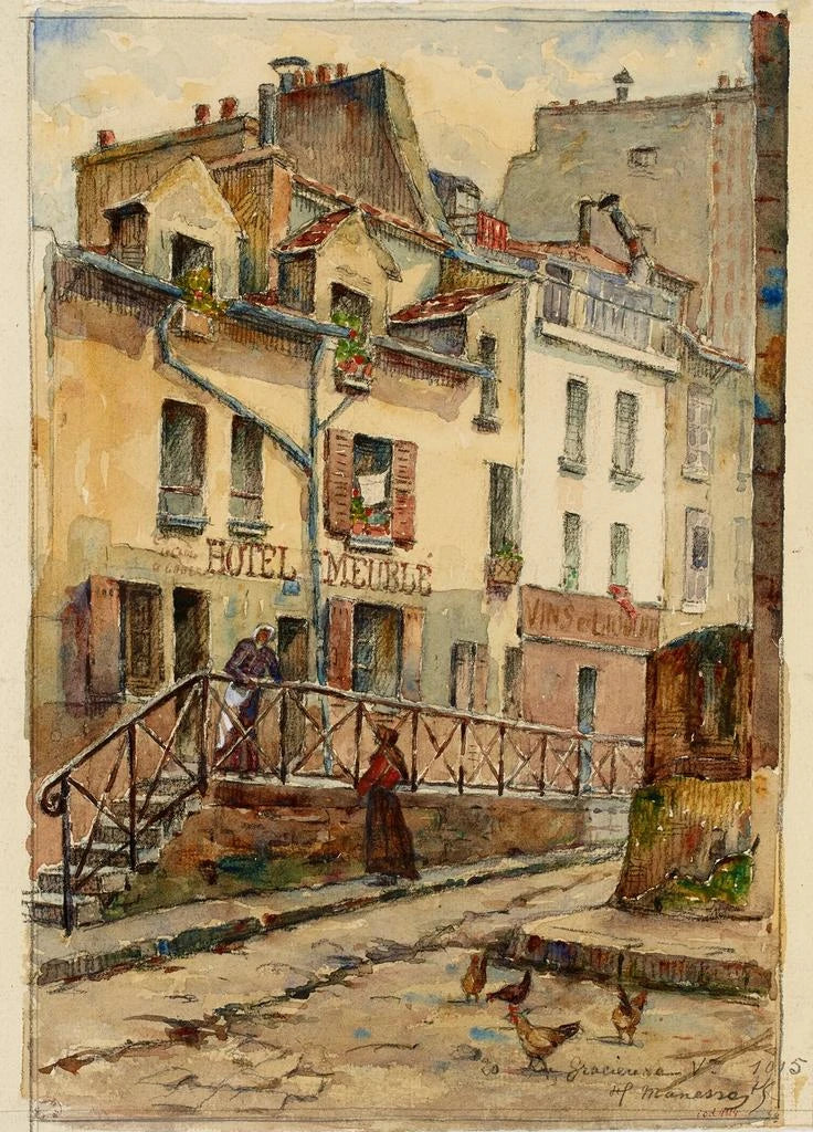 Georges-Henri Manesse, peintre français actif au début du XXe siècle, est souvent associé au mouvement impressionniste. Influencé par les grands maîtres de son temps, il développe un style qui se concentre sur la capture de la lumière et des atmosphères urbaines. Manesse a su immortaliser des scènes de la vie quotidienne, offrant un regard tendre et nostalgique sur la société de son époque. La rue Gracieuse est un parfait exemple de son talent pour représenter la beauté des moments simples, tout en témoignant de l’évolution artistique de son temps.