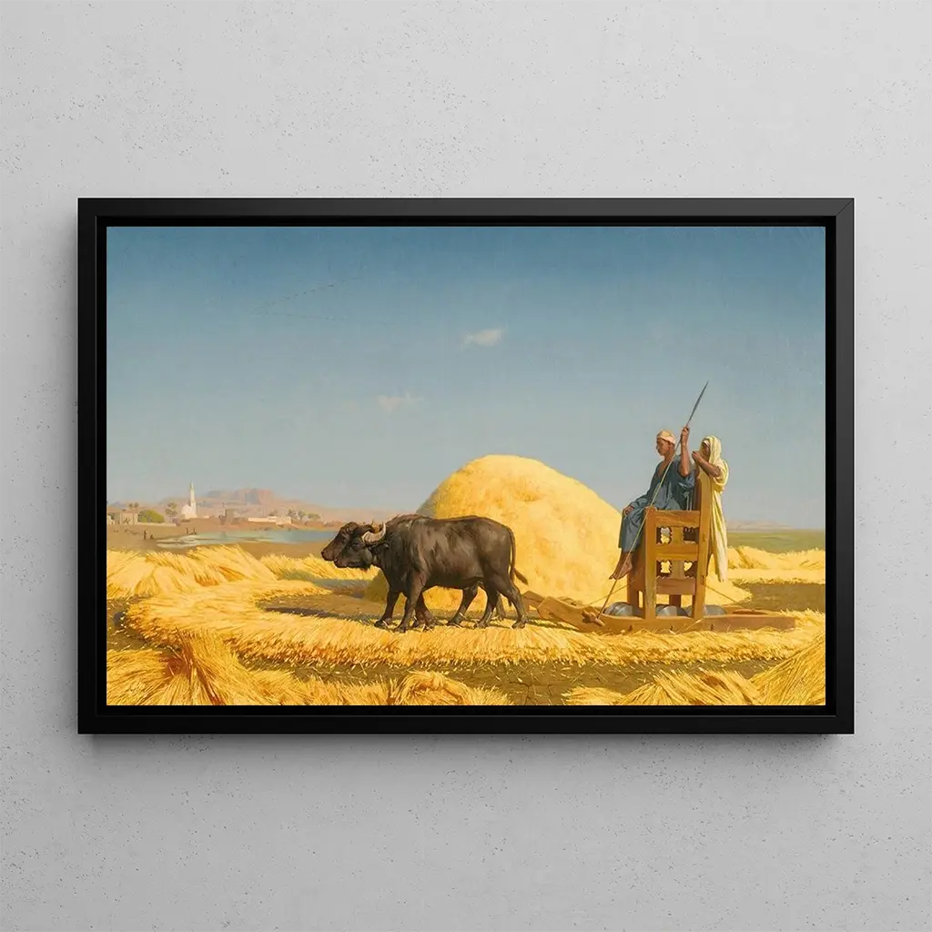 The artist behind Grain Threshers in Egypt, The Grain Threshers Egypt, is rooted in an artistic tradition dating back several millennia. Ancient Egypt, with its symbolic representations and refined techniques, has influenced many artists throughout the ages. Egyptian frescoes, often laden with religious and cultural meanings, have managed to capture the essence of daily life and beliefs of this fascinating civilization. Focusing on agricultural themes, the artist highlights the importance of farming in Egyptian society, while paying homage to an ancestral craftsmanship that continues to inspire.