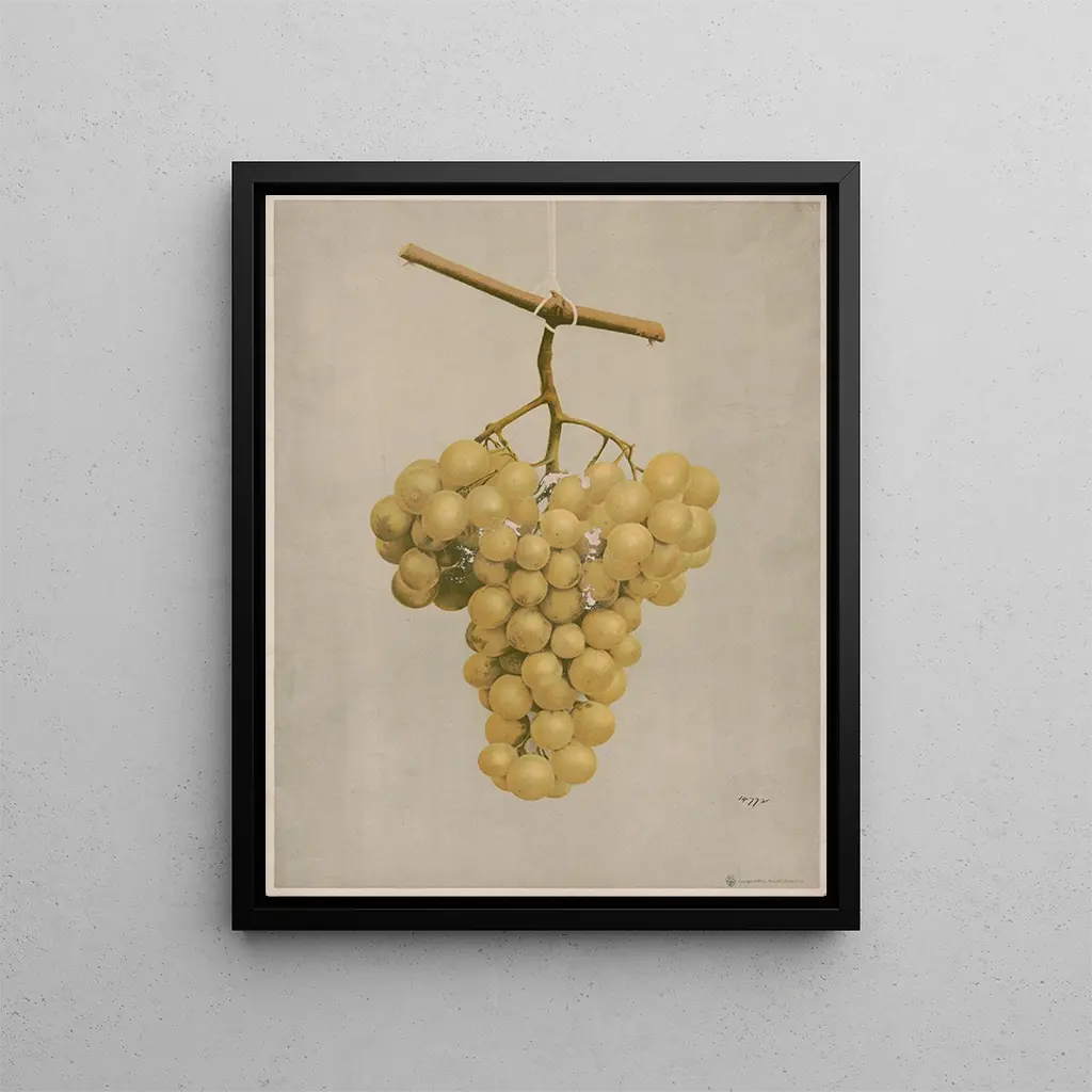 In the artwork "Golden Grapes of Hamburg Awarded," Louis Prang presents us with an enchanting vision of this prized fruit. Through his mastery of chromolithography, he manages to convey the light and texture of the grapes, creating an image that seems almost alive. This representation is part of an artistic tradition that celebrates nature and its wonders, a theme dear to Prang's era. The grapes, symbols of abundance and prosperity, find their place in contemporary interiors, bringing warmth and color. Prang's works are ideal for those seeking to infuse a natural and refined spirit into their decor. Consider discovering this art print on Artem Legrand to add a touch of sophistication to your space.
