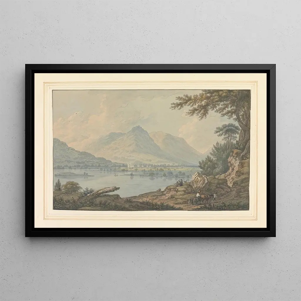 Grasmere: an enchanting landscape "Grasmere," a work by Joseph Farington, evokes the serene beauty of British scenery. This canvas depicts an idyllic panorama, where lush green hills are reflected in the calm waters of a lake. The shades of green and blue, combined with touches of golden light, create a peaceful and dreamy atmosphere. Farington's technique, blending precision and sensitivity, captures the magic of nature in all its splendor. Every detail, from the foliage to the reflections in the water, testifies to his talent for immortalizing fleeting moments of beauty. Joseph Farington: a witness to Romantic nature Joseph Farington, an 18th-century painter and watercolorist, is renowned for his landscapes that celebrate the natural beauty of Great Britain. A member of the Royal Academy, he was influenced by the Romantic movement, which valued nature and emotion. His works, often inspired by his travels, reflect a particular sensitivity towards the landscapes he encountered. Farington also played an important role in documenting the picturesque sites of his time, thus contributing to the preservation of Britain’s natural heritage through his art. A decorative acquisition with multiple benefits The art print of "Grasmere" is an ideal choice to enhance your interior, whether it be a living room, office, or bedroom. Its quality reproduction guarantees remarkable fidelity to the original work, allowing you to feel all the magic of the landscape. With its timeless charm, this canvas will bring a touch of serenity and elegance to your decor. By choosing this piece, you select a work that not only beautifies your space but also invites contemplation and escape, transforming your environment into a haven of peace.