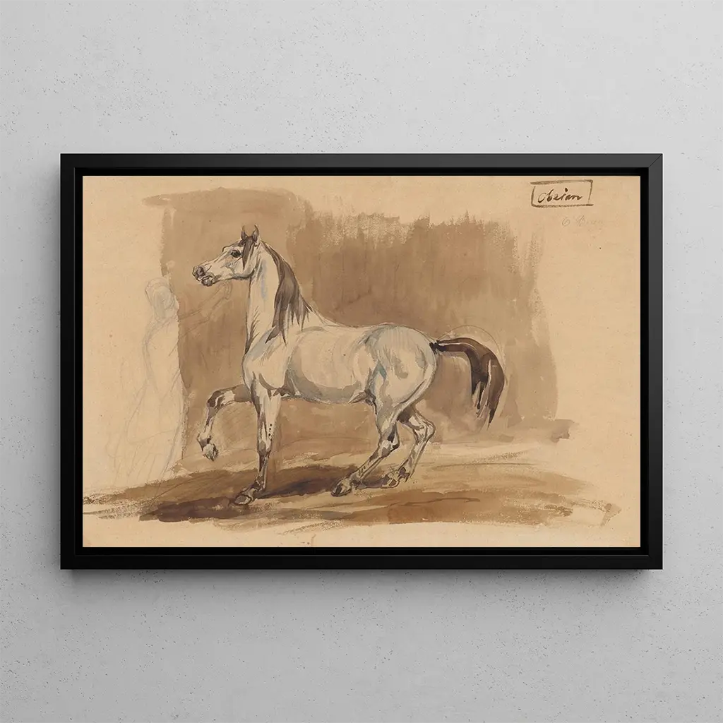 Piotr Michałowski, a Polish painter of the 19th century, is renowned for his realistic representations of horses and rural scenes. Trained at the Academy of Fine Arts in Warsaw, he draws inspiration from European artistic traditions while incorporating elements of his cultural heritage. His passion for horses, which he considers symbols of freedom and beauty, is evident in each of his works. Michałowski was able to capture the very essence of these animals, making the Arab Grey Horse Obeian an iconic piece of his oeuvre, reflecting his talent and commitment to realism.