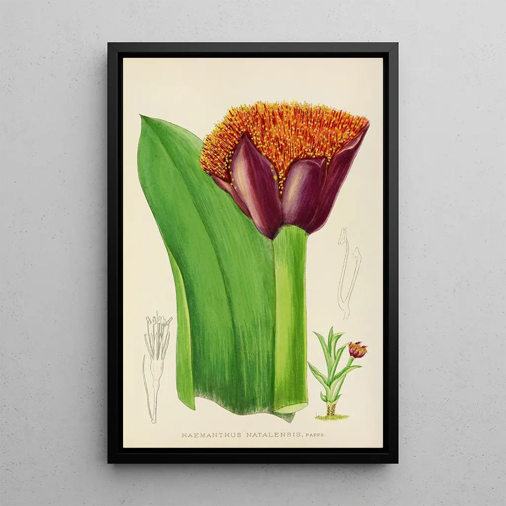 Haemanthus natalensis: an explosion of floral colors The art print Haemanthus natalensis by Illtyd Buller Pole-Evans immerses us in a vibrant universe where nature expresses itself with brilliance. The red and green hues intertwine to create a harmonious composition, evoking the richness of South African flora. The artist's technique, blending watercolor and gouache, brings each petal and leaf to life, as if one could almost feel the delicate texture of the flowers. The atmosphere emanating from this piece is both joyful and soothing, inviting the viewer to immerse themselves in the ephemeral beauty of these plants. Illtyd Buller Pole-Evans: a pioneer of artistic botany Illtyd Buller Pole-Evans, botanist and artist of the early 20th century, masterfully combined his love for nature with his artistic talent. Primarily active in the context of South Africa, he was influenced by the exotic landscapes and unique biodiversity of the region. His works, often focused on local flora, reflect a meticulous attention to detail and a passion for botany. Pole-Evans contributed to the documentation of plant species, making him an important figure in the history of botanical art. His work is a celebration of nature, capturing the beauty of plants with remarkable precision. A decorative acquisition with multiple assets The art print of the Haemanthus natalensis is an ideal decorative piece to enhance your interior, whether in a living room, office, or bedroom. Its vibrant color palette adds a touch of freshness and vitality to any space. The quality of the reproduction guarantees fidelity to the original artwork, allowing you to enjoy the aesthetic of Pole-Evans without compromising your decor style. By choosing this canvas, you opt for an artistic element that not only beautifies your environment but also sparks conversations about art and nature.