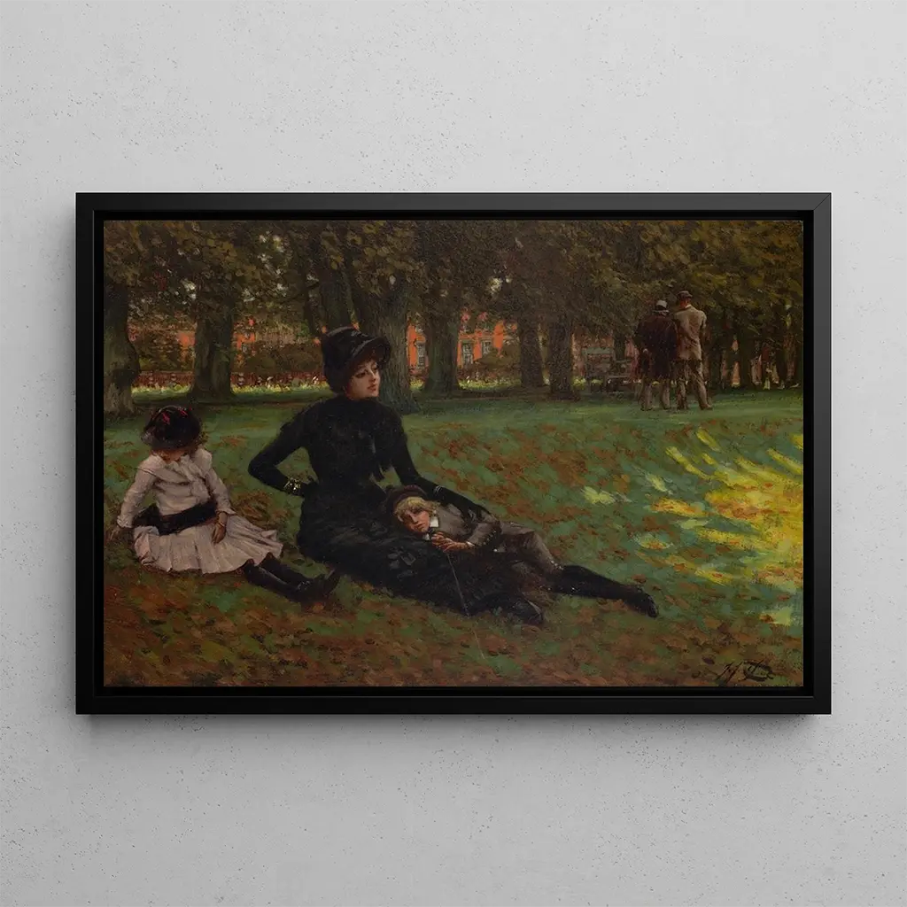 James Tissot, a French painter of the 19th century, is renowned for his talent in capturing scenes of everyday life and historical moments with remarkable precision. Influenced by the Impressionist movement, he skillfully combined technique and narration, making his works lively and engaging. Tissot spent part of his life in England, where he was fascinated by British history and culture. "Hampton Court" is a perfect example of his ability to immortalize places rich in history, while offering a unique perspective on the society of his time.