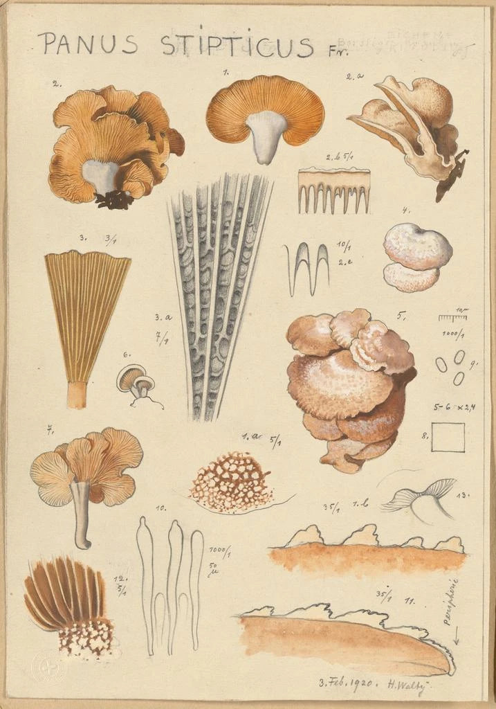 In this captivating artwork, Hans Baldung captures the ephemeral essence of nature through a meticulous depiction of Panus stipticus. The vibrant colors and delicate nuances evoke an atmosphere that is both mystical and realistic. The artist employs an oil painting technique that highlights the details of the mushrooms, creating a play of light that draws the eye. Each element of the composition appears alive, as if the mushrooms are in full growth, inviting the viewer to explore the depths of the forest.