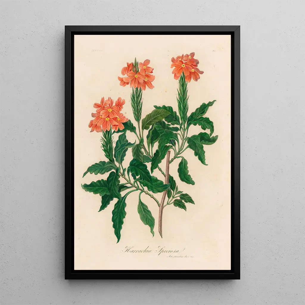 Choosing the art print of Harrachia speciosa means selecting a decorative piece that will brighten your living space. Whether in a living room, office, or bedroom, this artwork will add a touch of freshness and elegance. Its printing quality ensures remarkable fidelity to the colors and details of the original work, offering undeniable aesthetic appeal. By integrating this canvas into your decor, you enrich your interior with a piece that celebrates floral beauty while creating a warm and welcoming atmosphere.