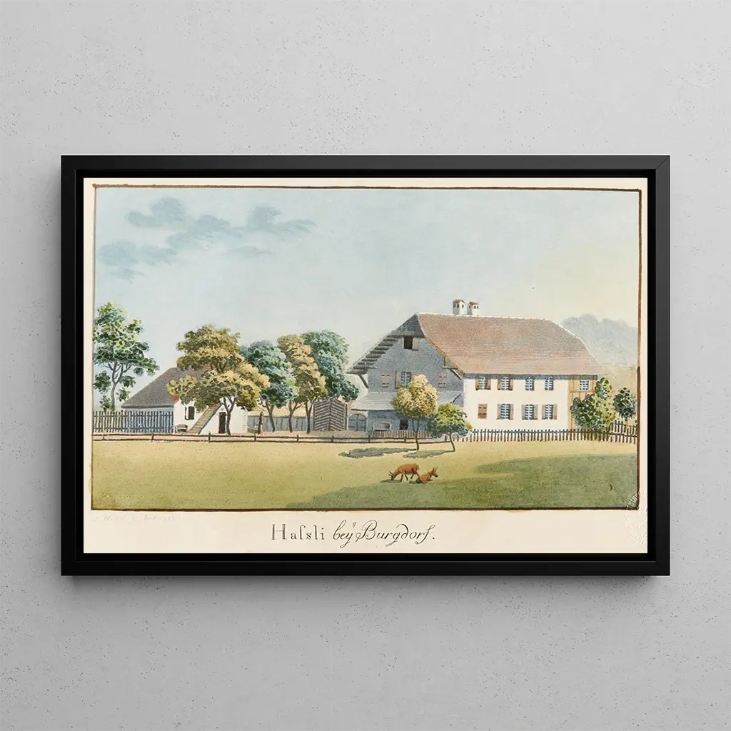 The art print of the painting "Hassli near Burgdorf" is a perfect decorative choice to enhance your interior, whether in a living room, office, or bedroom. Its print quality and fidelity to the original colors make it an eye-catching piece that creates a calming ambiance. By integrating this canvas into your decor, you bring a touch of serenity and elegance, while celebrating the beauty of Swiss landscapes. This artwork, both aesthetic and inspiring, will enrich your space while evoking the tranquility of the mountains.
