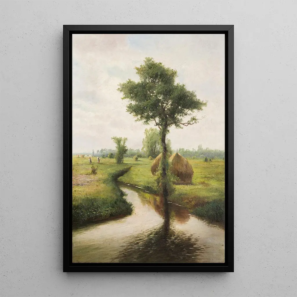 La art print "Meules de foin" de Ludvík Bartók capture l'essence même de la vie rurale à travers une scène paisible et lumineuse. Les meules, symboles de la récolte et du travail des champs, sont baignées dans une lumière dorée qui accentue les textures et les formes. Les couleurs terreuses, mêlées à des touches de bleu du ciel, créent une harmonie visuelle qui évoque la tranquillité de la campagne. La technique de Bartók, qui joue sur les contrastes de lumière, donne vie à cette scène, invitant le spectateur à plonger dans un monde de sérénité et de simplicité.