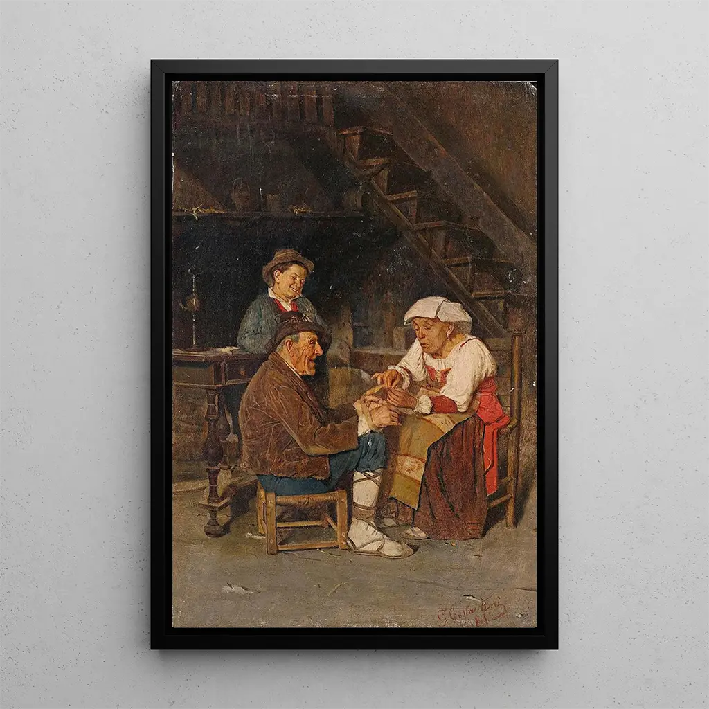 Help for the lacemaker: a tribute to artisanal patience "Help for the lacemaker" by Giuseppe Costantini is an art print that celebrates the delicacy and precision of handcrafted work. The composition depicts a focused lacemaker, surrounded by threads and intricate patterns, capturing the very essence of her art. The soft colors and play of light create a serene atmosphere, conducive to concentration. Every detail is carefully rendered, demonstrating the artist's skill in portraying not only the subject but also the emotion that accompanies it. This art print invites viewers to appreciate the beauty of manual craftsmanship and the patience it requires. Giuseppe Costantini: a craftsman of everyday life Giuseppe Costantini, active in the 19th century, is known for his depictions of scenes from daily life, highlighting often overlooked trades. His work "Help for the lacemaker" perfectly illustrates his commitment to immortalizing moments of ordinary life with particular sensitivity. Influenced by the realist movement, Costantini captured the beauty of simple gestures and artisanal traditions. His work is a valuable testimony of his era, offering insight into the values and practices that shaped Italian society. A decorative art print with multiple virtues The reproduction of "Help for the lacemaker" makes an ideal decorative choice to enrich your interior. Whether in a living room, office, or bedroom, this art print adds a touch of authenticity and charm. Its printing quality guarantees remarkable fidelity to the details of the original artwork, allowing you to fully enjoy its aesthetic. By incorporating this art print into your decor, you give your space a warm and inspiring atmosphere, while paying homage to craftsmanship and the beauty of everyday life.
