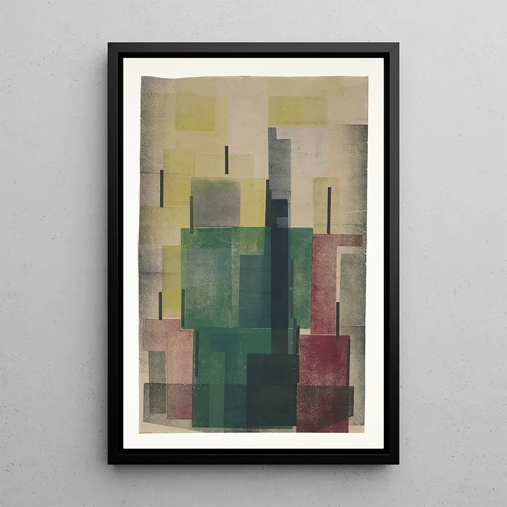 La reproduction de l'œuvre "Composition" d'Hendrik Nicolaas Werkman nous plonge dans un univers où les formes géométriques s'entrelacent avec une palette de couleurs vibrantes. L'artiste joue habilement avec les contrastes, créant une atmosphère dynamique et captivante. Les lignes et les formes semblent danser sur la toile, invitant le spectateur à explorer les profondeurs de cette composition audacieuse. Werkman, avec sa technique unique, parvient à transmettre une sensation de mouvement, presque musicale, qui résonne dans l'esprit de ceux qui contemplent son œuvre.