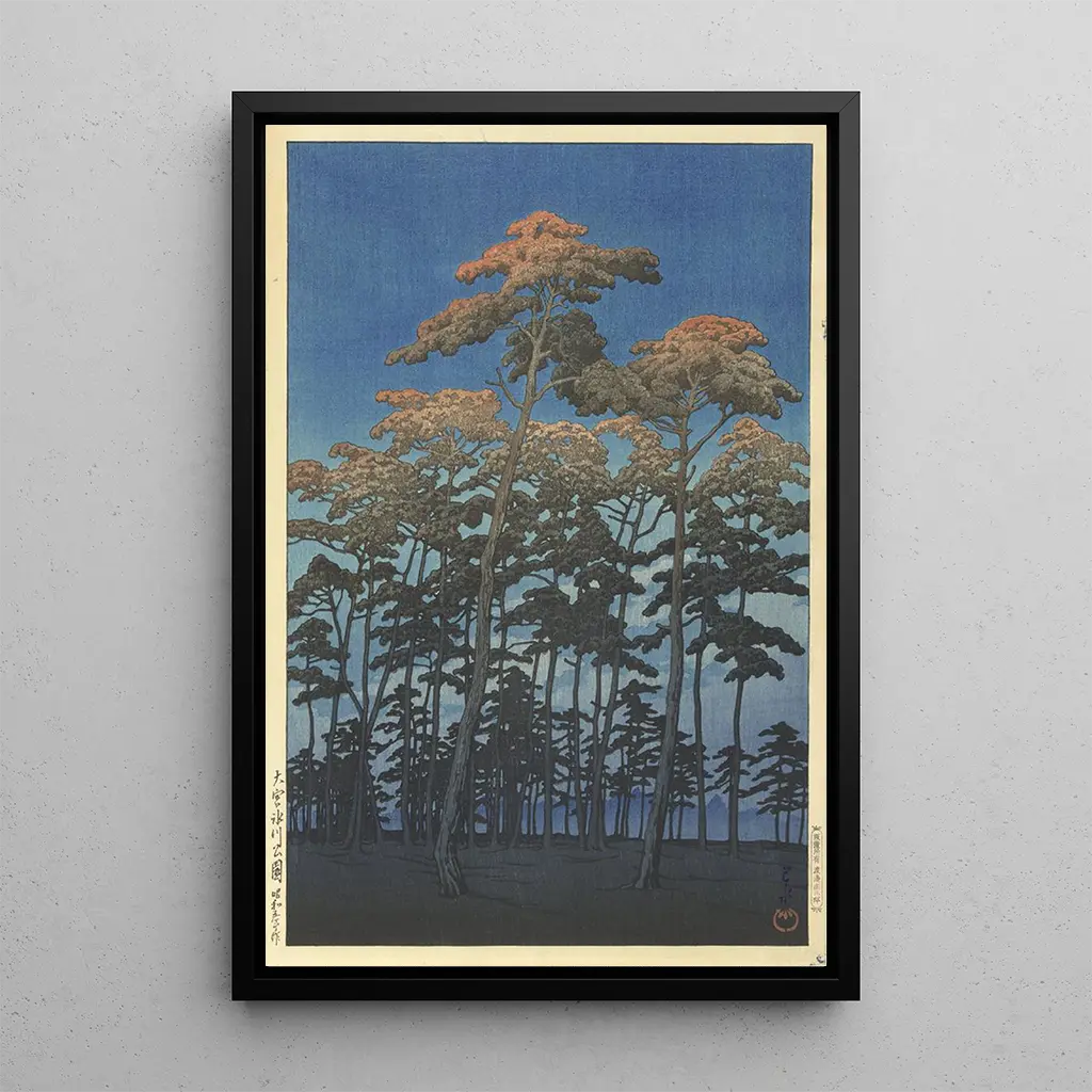 La art print "Parc Hikawa à Omiya" de Kawase Hasui transporte le spectateur dans un havre de paix, où la nature s'épanouit dans toute sa splendeur. Les couleurs vives et les contrastes subtils entre le feuillages et le ciel créent une atmosphère vivante et apaisante. La technique de l'estampe, avec son jeu de lumière et d'ombre, donne vie à chaque détail, des fleurs délicates aux reflets dans l'eau. Ce tableau invite à la rêverie, évoquant des moments de tranquillité au cœur de la nature.